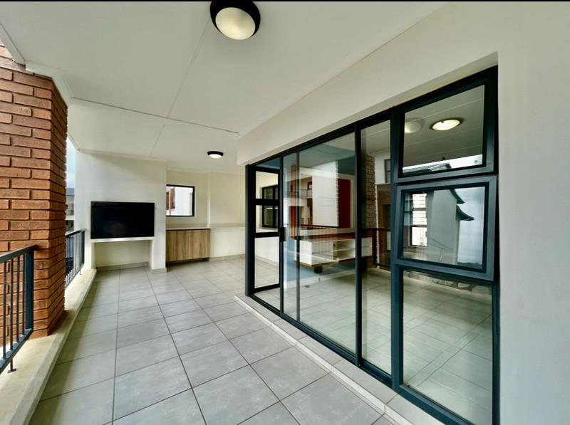 Large sliding doors allow natural light in, and allow effortless access to the generously sized balcony and built-in braai — perfect for relaxed outdoor entertaining.