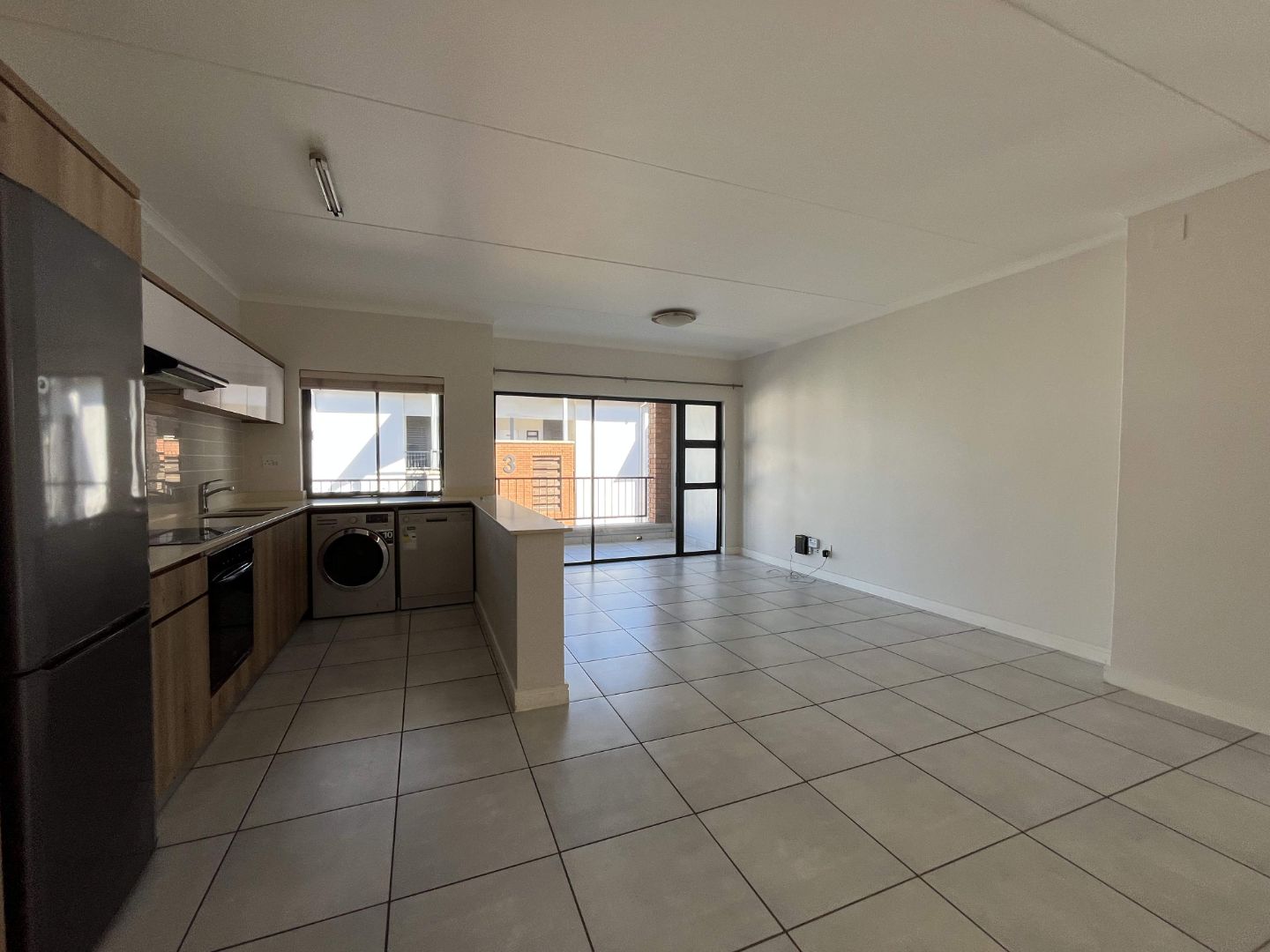 Positioned on the middle floor, this beautifully presented unit offers a sleek, modern fitted kitchen complete with three major appliances (fridge, washing machine, and dishwasher), making everyday living effortless. The open-plan layout flows seamlessly into a light-filled lounge, extending onto a private balcony — perfect for sundowners, relaxed evenings, or entertaining guests, complete with a built-in braai.