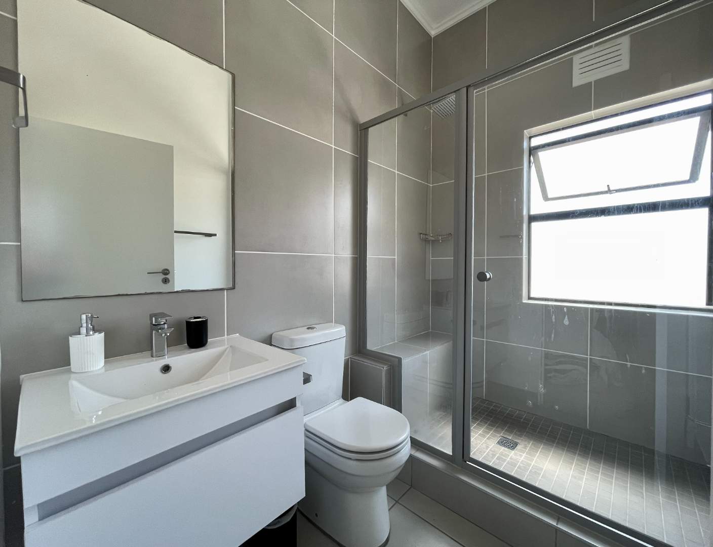 This Modern top floor 2-bedroom, 2-bathroom apartment offers the perfect blend of comfort, convenience, and contemporary design. The main bedroom has an en-suite bathroom with bath and shower. The guest bathroom has a large shower.
