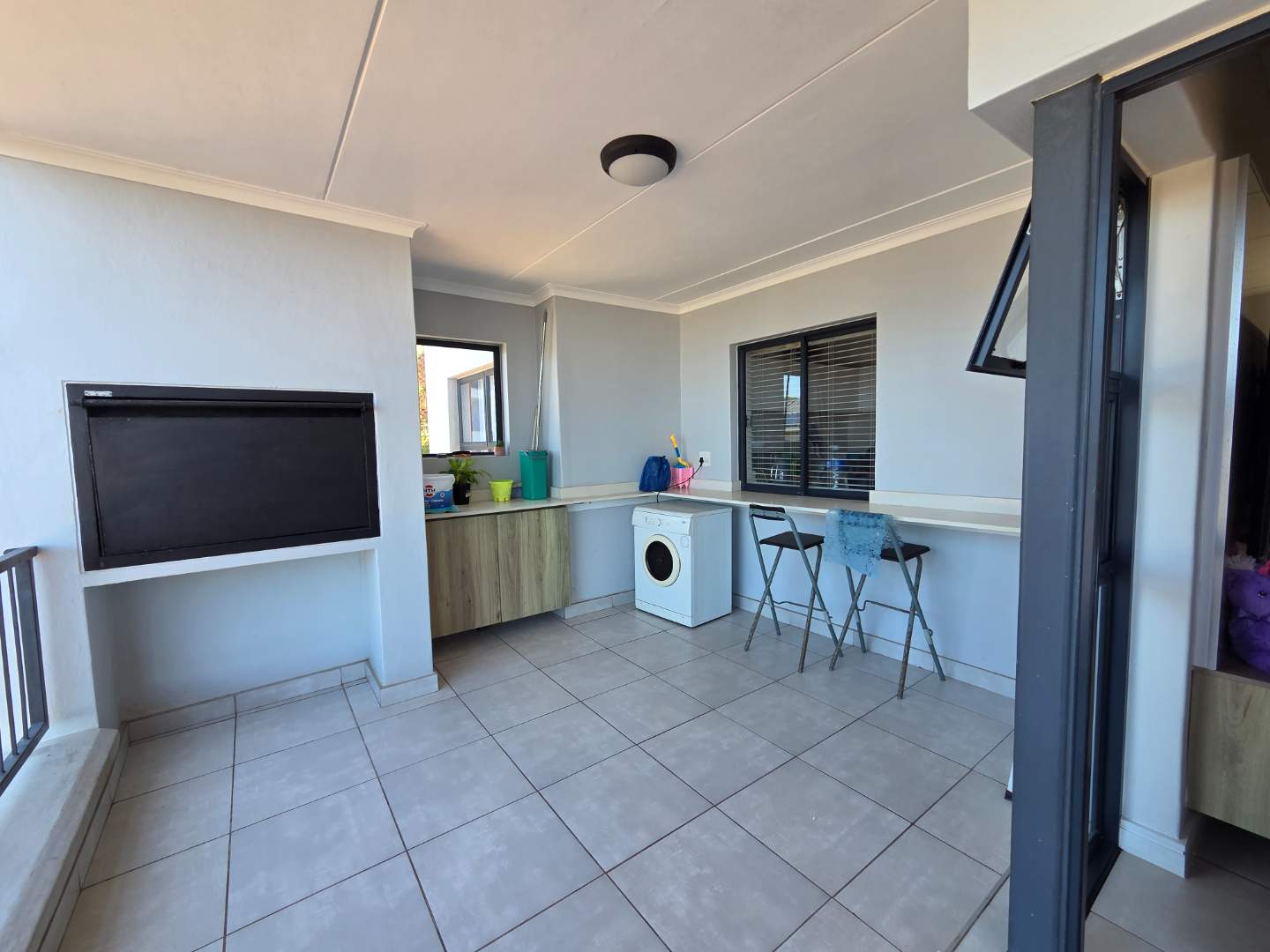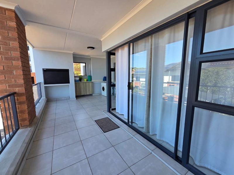 The open plan design allows plenty of natural light to flood the apartment, and creates seemless flow to the covered patio with built-in braai, the ideal space for entertaining, or enjoying the sunrise over the ocean.