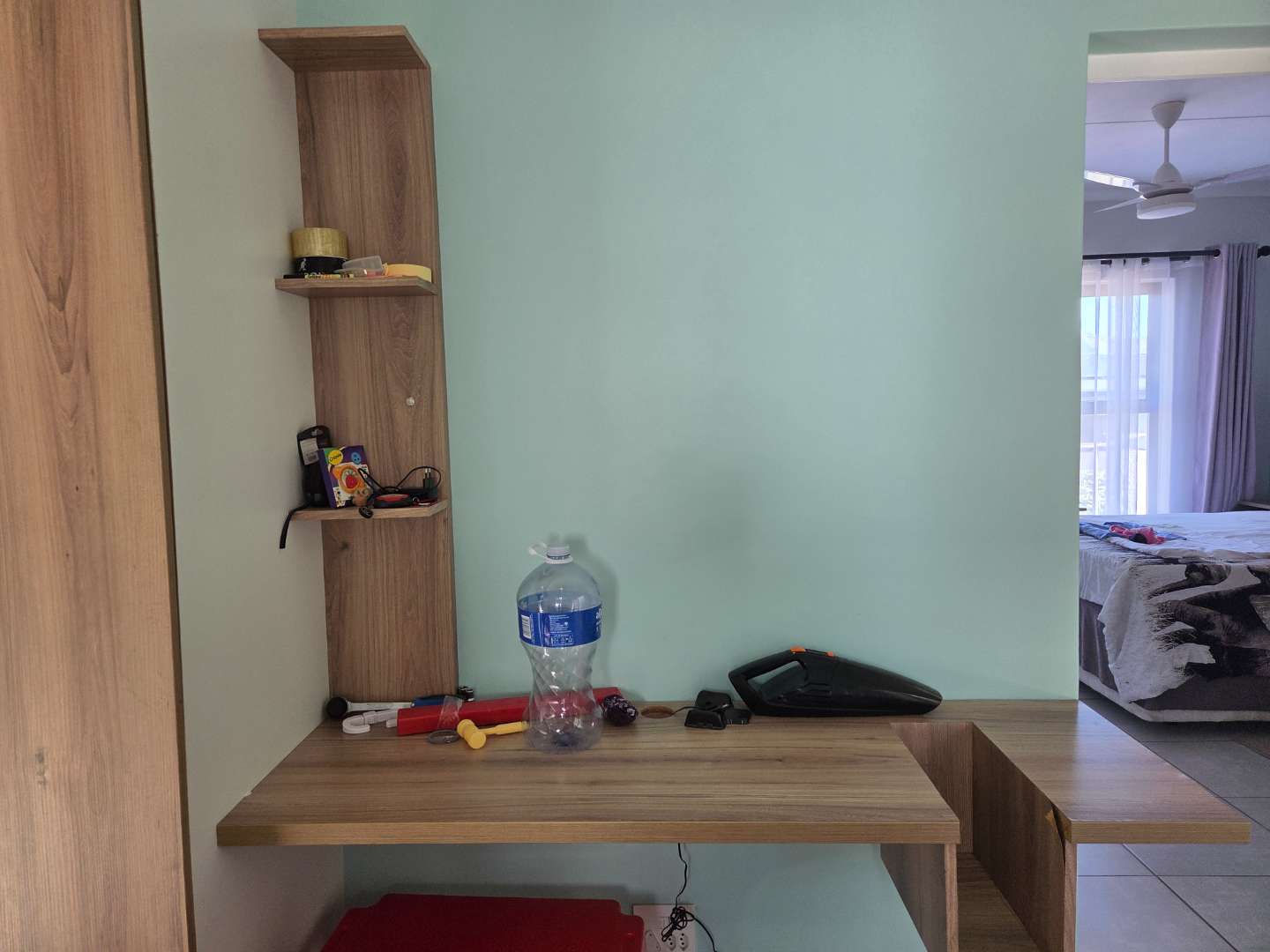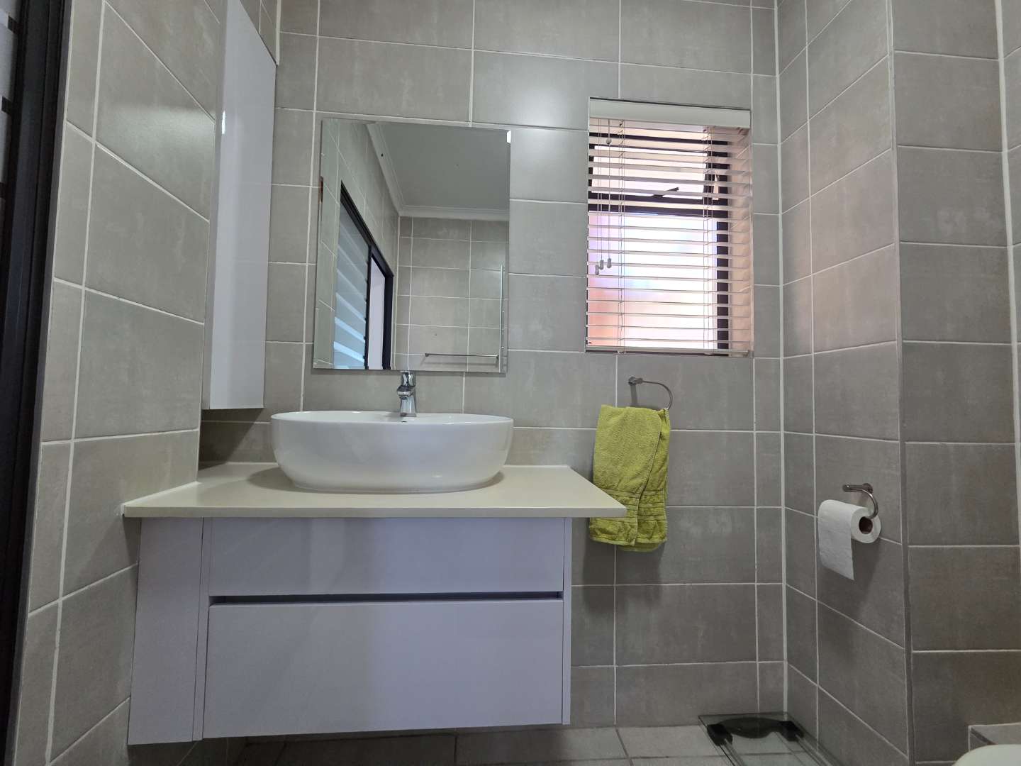 Additional cupboard space has been added in the family bathroom, as well as a work area in the passage alcove.
