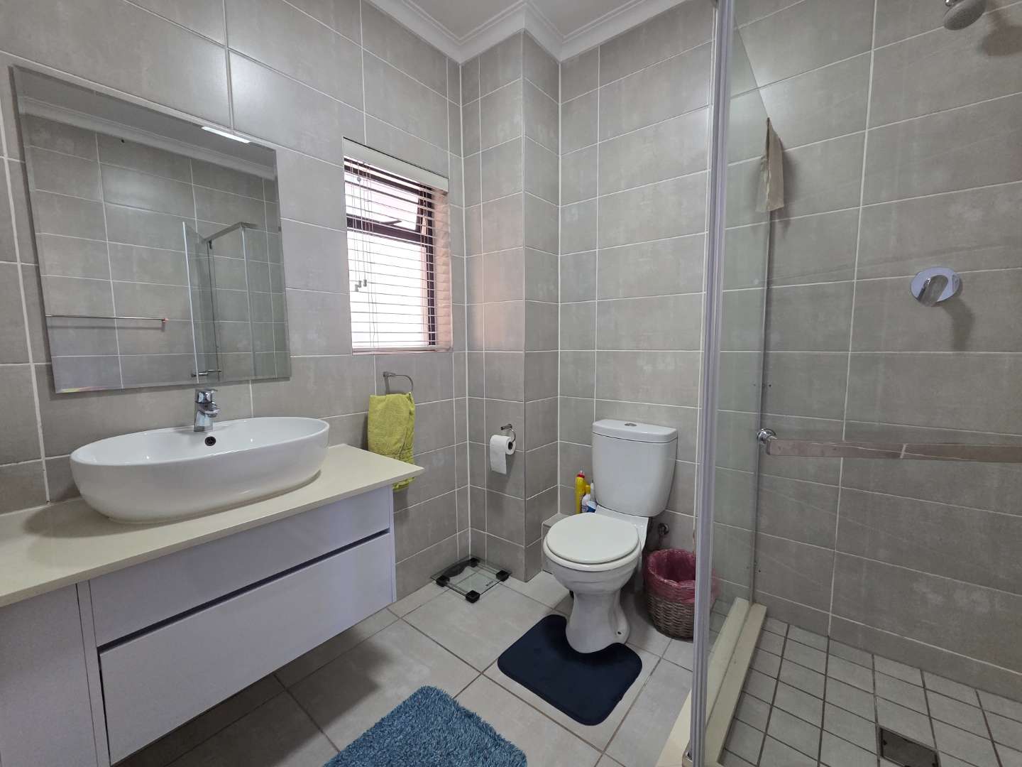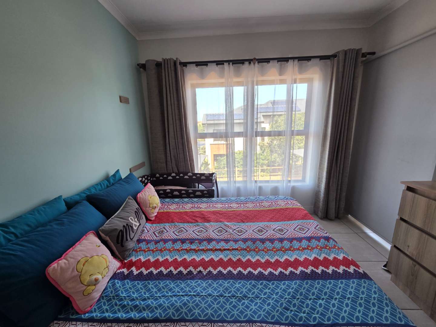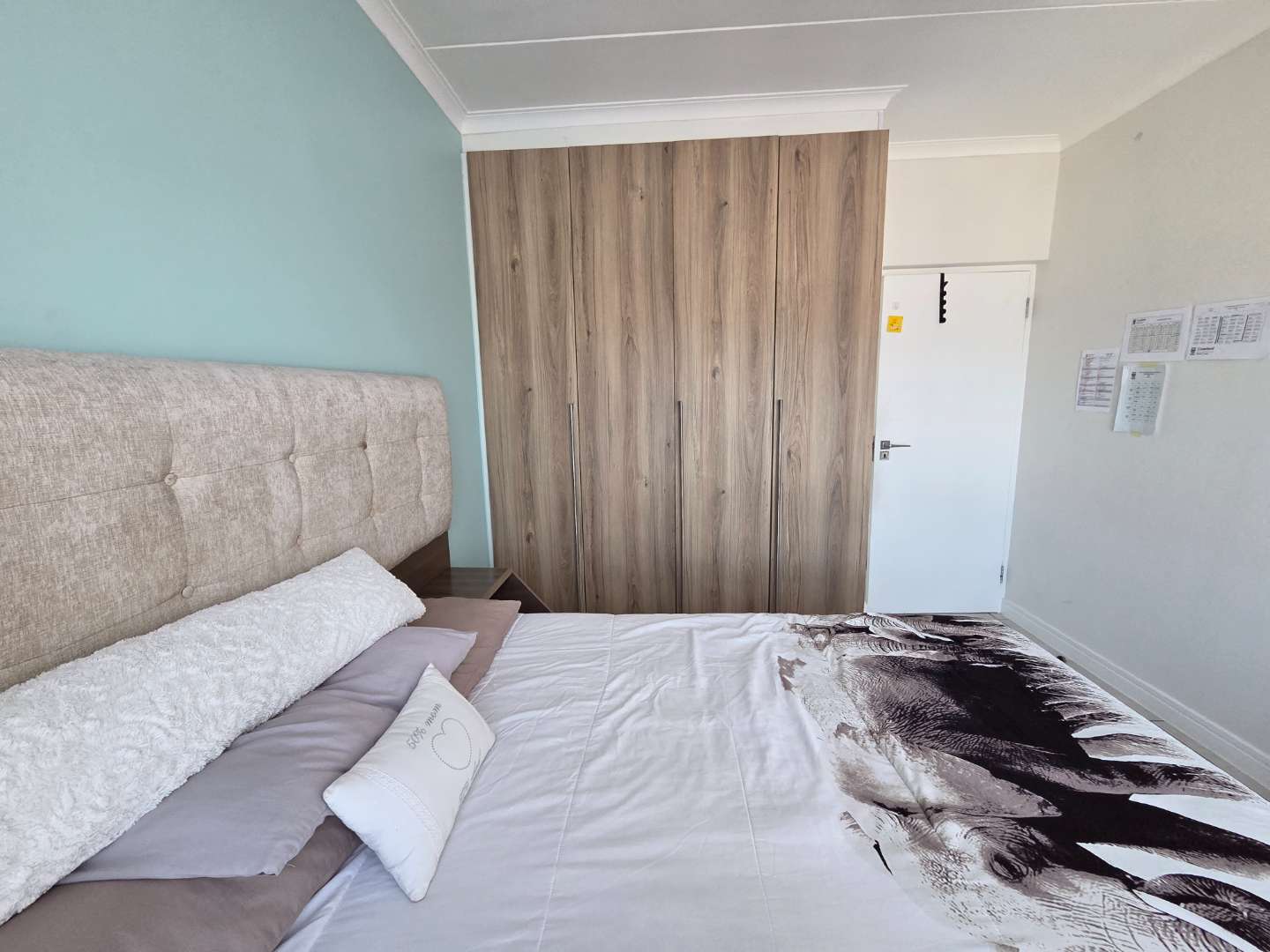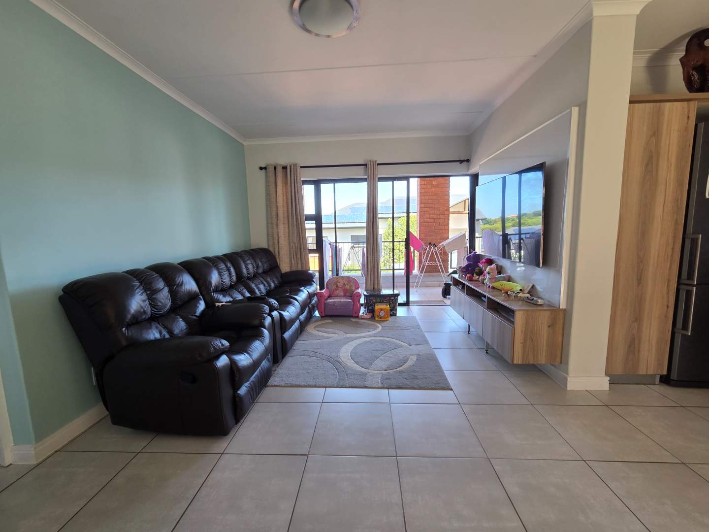 All three bedrooms feature ceiling fans and plenty of cupboard space, and the main bedroom has direct access to the balcony, and an en-suite bathroom with a shower.