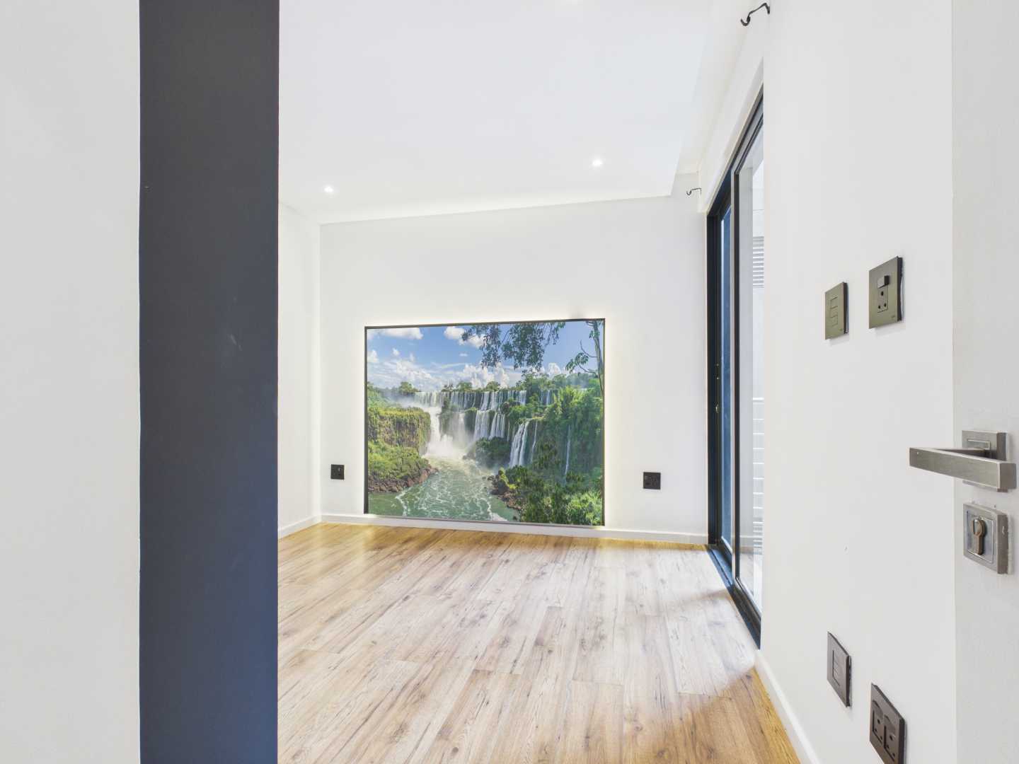 The open-plan living area flows seamlessly into a sleek, modern kitchen fitted with fully integrated SMEG appliances, combining luxury with functionality. Designed for effortless living, the apartment features a smart lighting system, allowing you to control your home environment with ease and convenience.