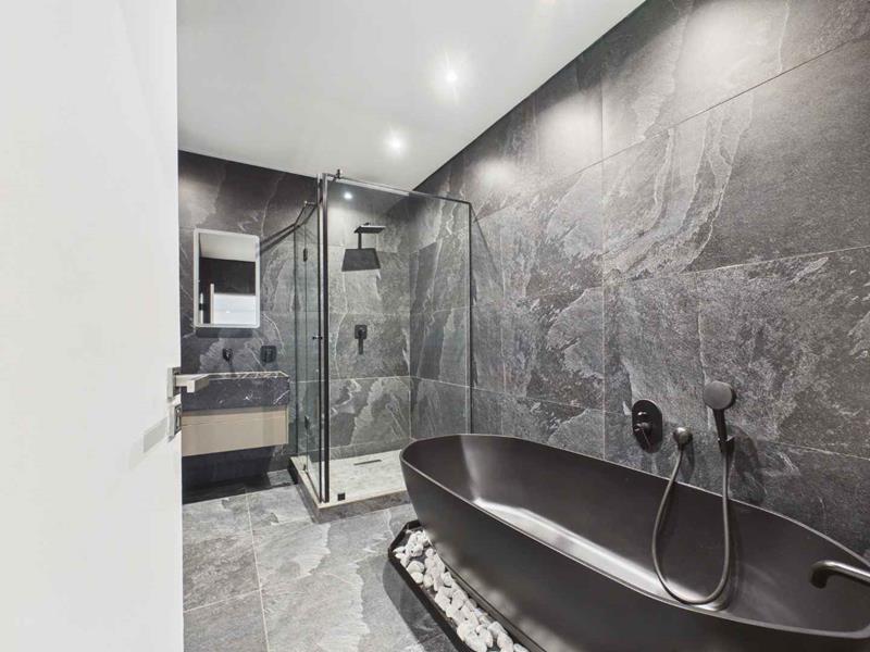 Both bedrooms are generously sized, with the main bedroom offering a stylish en-suite bathroom fitted with a shower. The second bathroom is well-appointed and includes both a bath and shower — ideal for guests or family living.