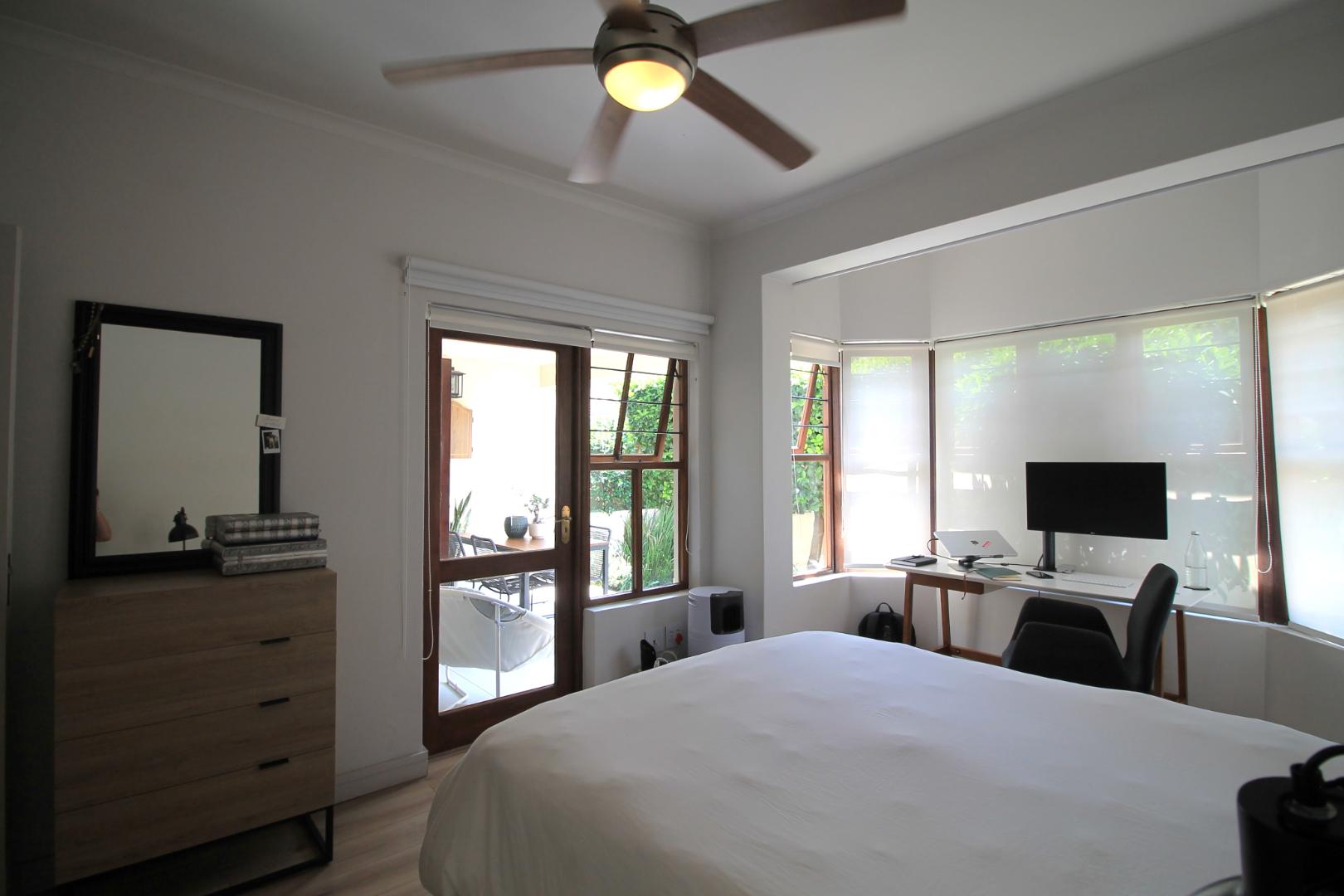 The main bedroom has a stunning bay window and opens out to the covered patio and beautiful well established garden