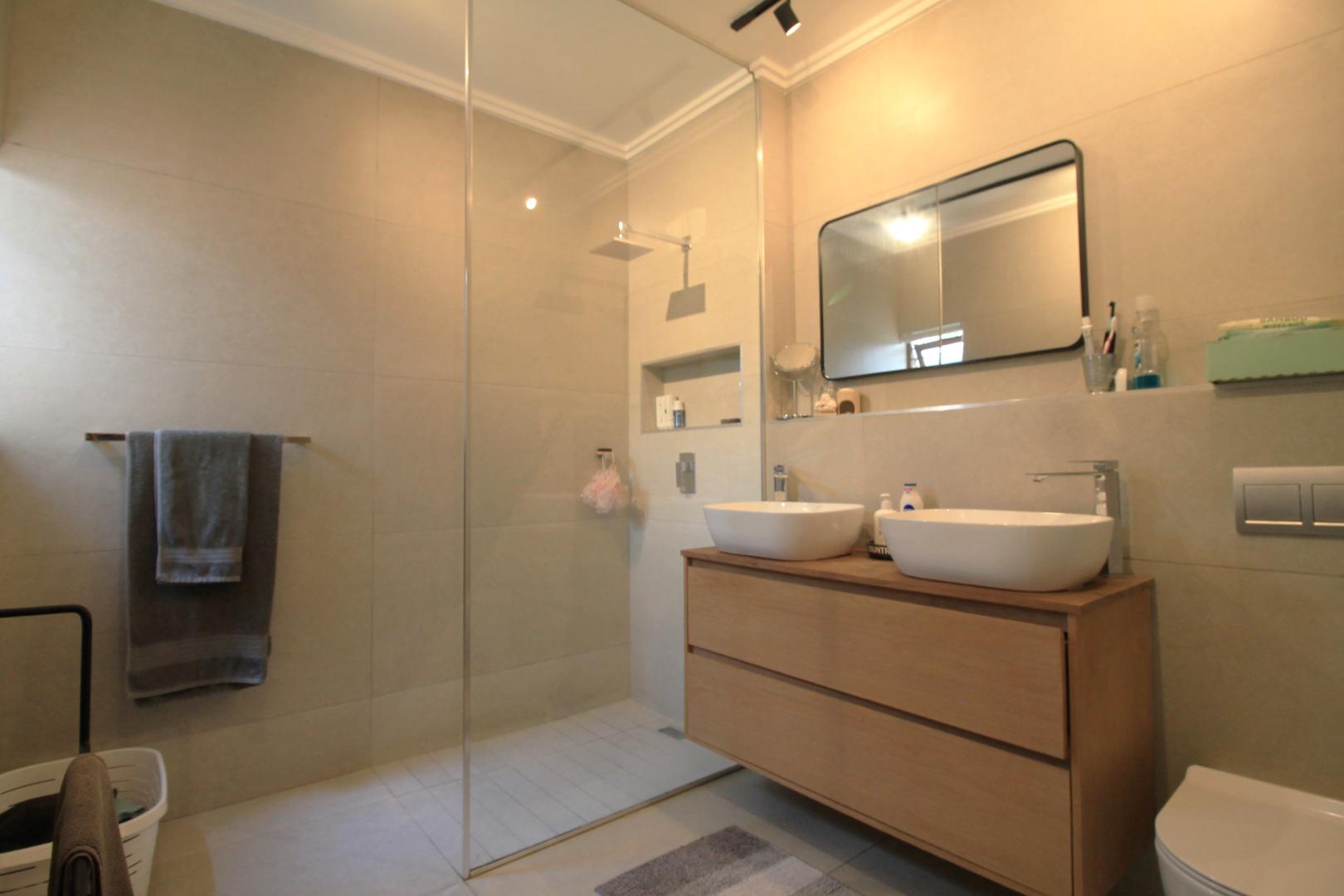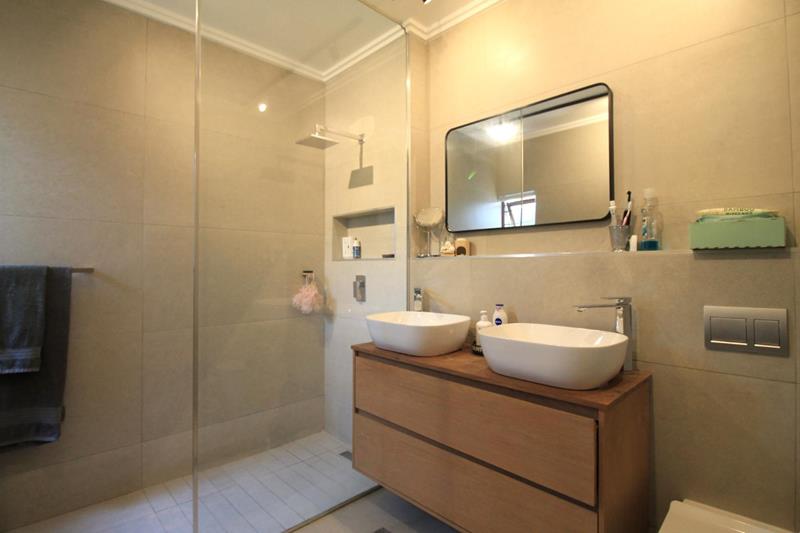 * 2 bathrooms, the main has a large shower, double vanity and toilet, while the 2nd bathroom has a bath, a shower over the bath, toilet and vanity