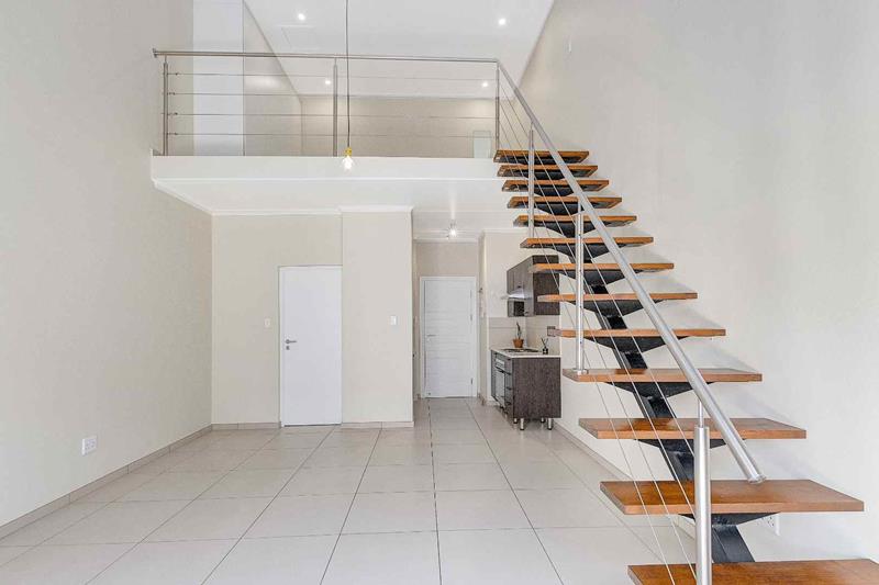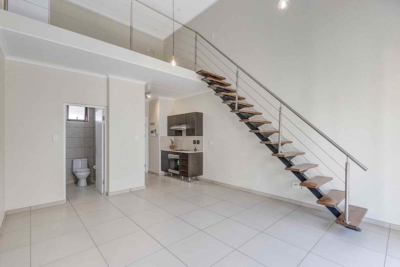Ascend to the large, open plan bedroom. This spacious bedroom is thoughtfully designed with plenty of cupboard space, ensuring that your belongings are neatly stored away while maintaining a clutter-free environment. The bathroom, conveniently located on the lower level, features modern fixtures and finishes, providing a comfortable and stylish space for your daily routines. This loft apartment is not just a place to live; it’s a lifestyle choice that combines contemporary design with practical living solutions, making it a perfect starter home for the young professional. This apartment is also an excellent investment opportunity.
