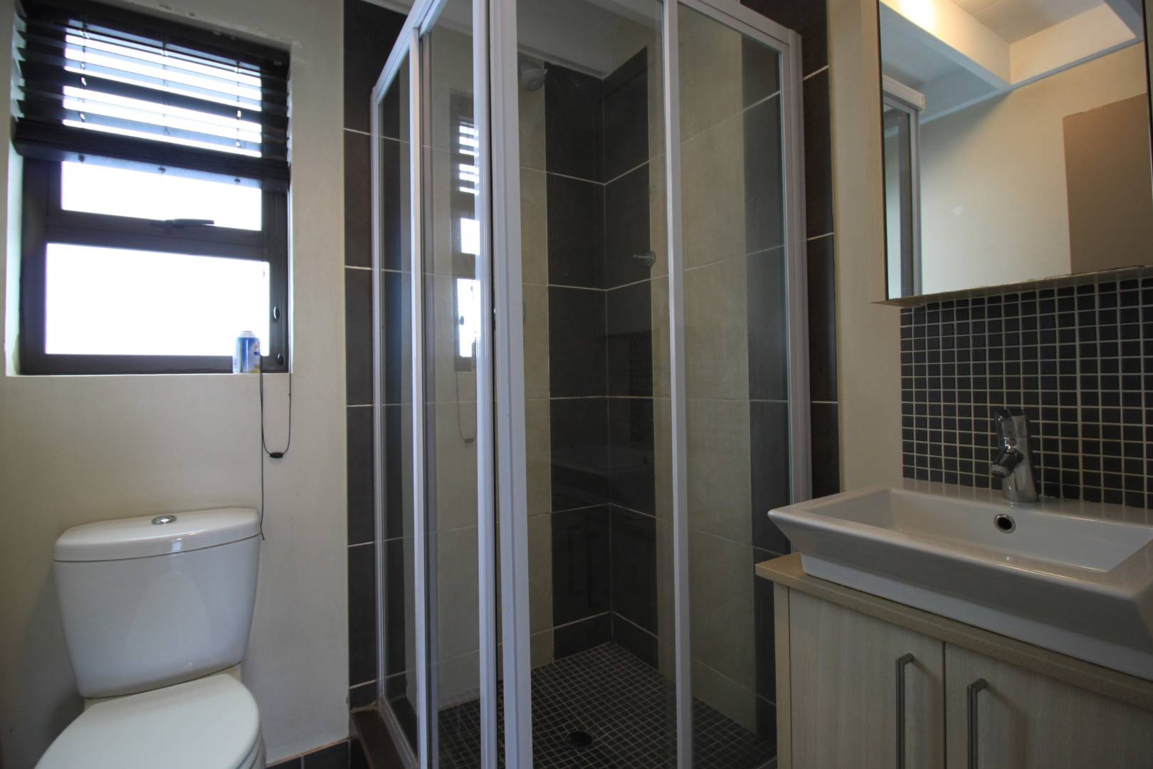 * Bathroom with shower, toilet and vanity