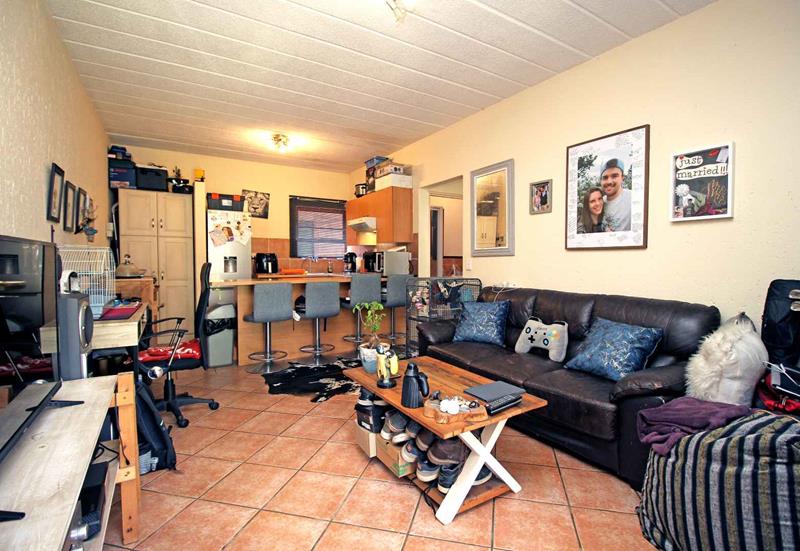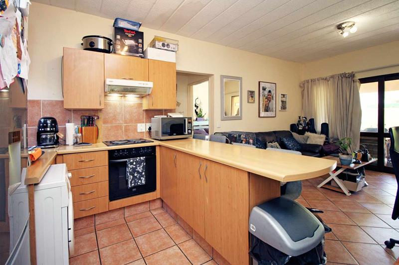 The apartment features a functional open-plan kitchen that flows effortlessly into the lounge, creating a cozy and inviting living space. From the lounge, step onto a covered patio that overlooks your own private, pet-friendly garden—a tranquil retreat for relaxing or hosting friends.