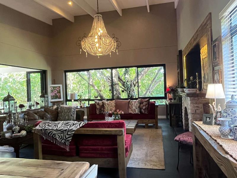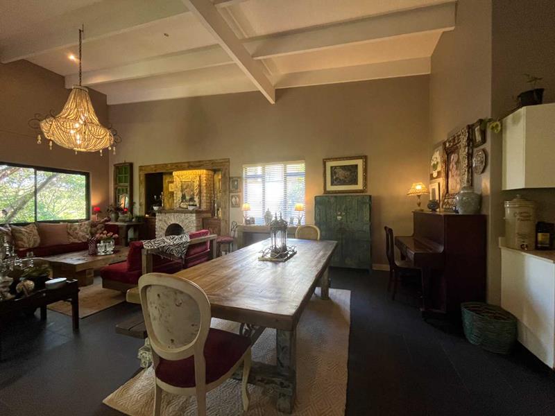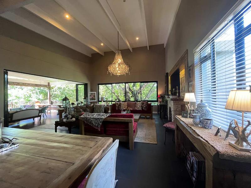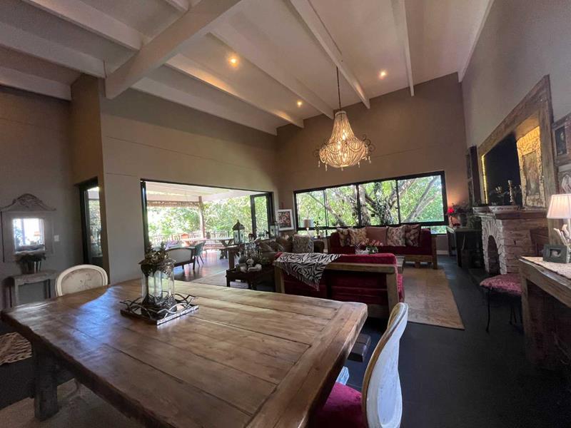 A beautifully designed living and dining area flows effortlessly onto an expansive covered patio, perfect for entertaining.
