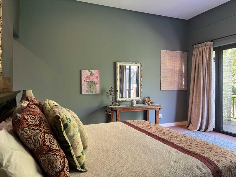 The master bedroom boasts a luxurious en-suite bathroom, a walk-in closet, stunning en-suite and a balcony overlooking the serene greenery