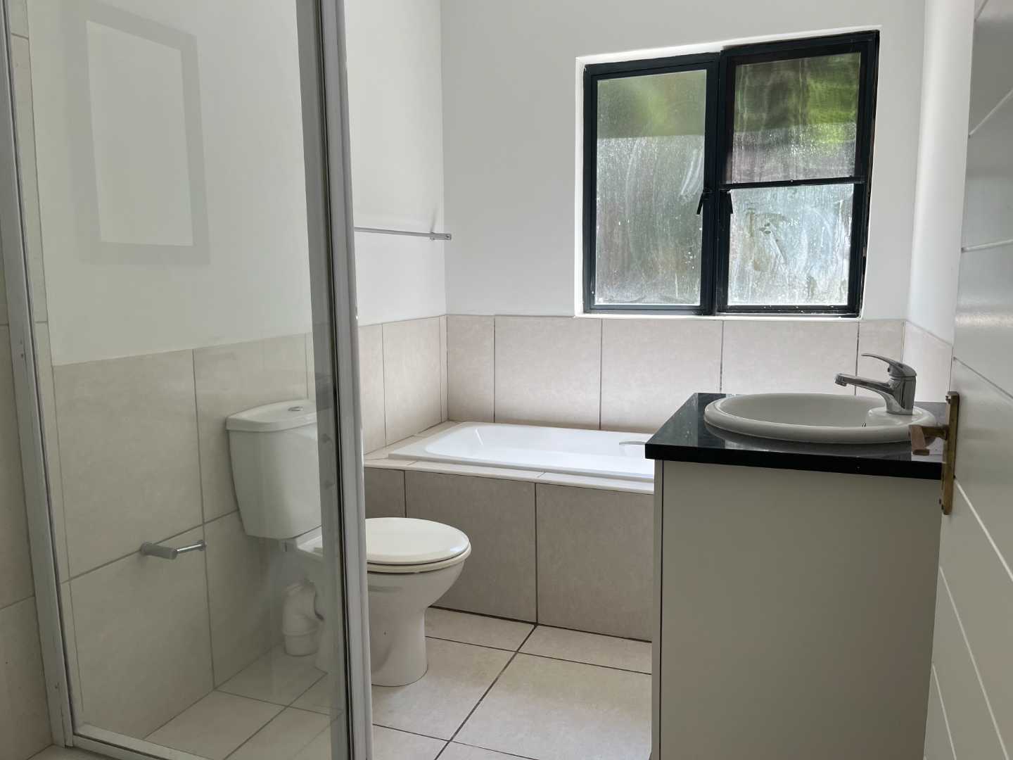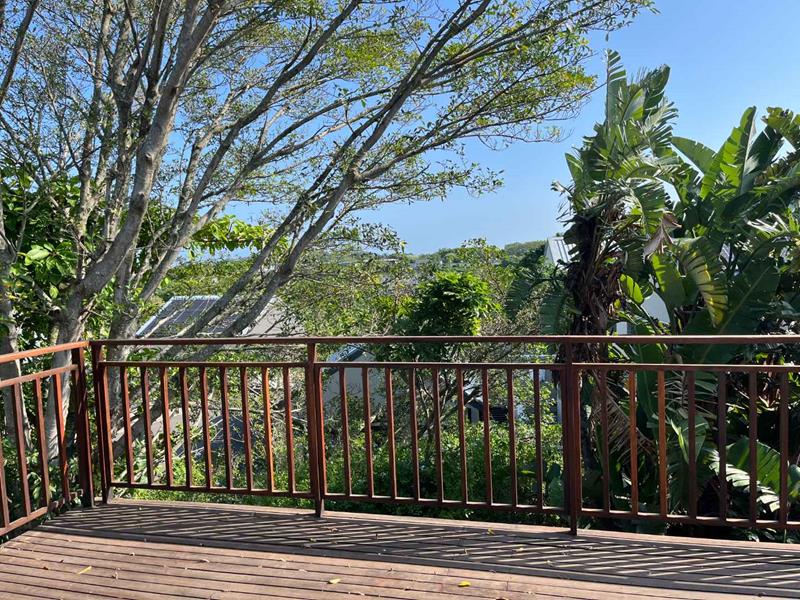 The home features a spacious, air-conditioned open-plan living area that flows seamlessly onto a private balcony/patio, perfect for relaxing while enjoying the serene indigenous forest outlook. A modern kitchen that is well-appointed with quality finishes and ample cupboard space.