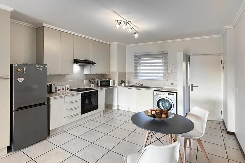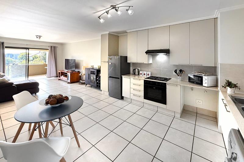 Step into the spacious open-plan kitchen, where sleek Caesarstone countertops and an abundance of cupboards create an inviting atmosphere for culinary creativity. With ample space for two appliances, meal prep becomes a breeze, allowing you to entertain guests effortlessly. This seamlessly flows into a cozy living area, adorned with elegant tiles, making it ideal for both relaxation and social gatherings.
