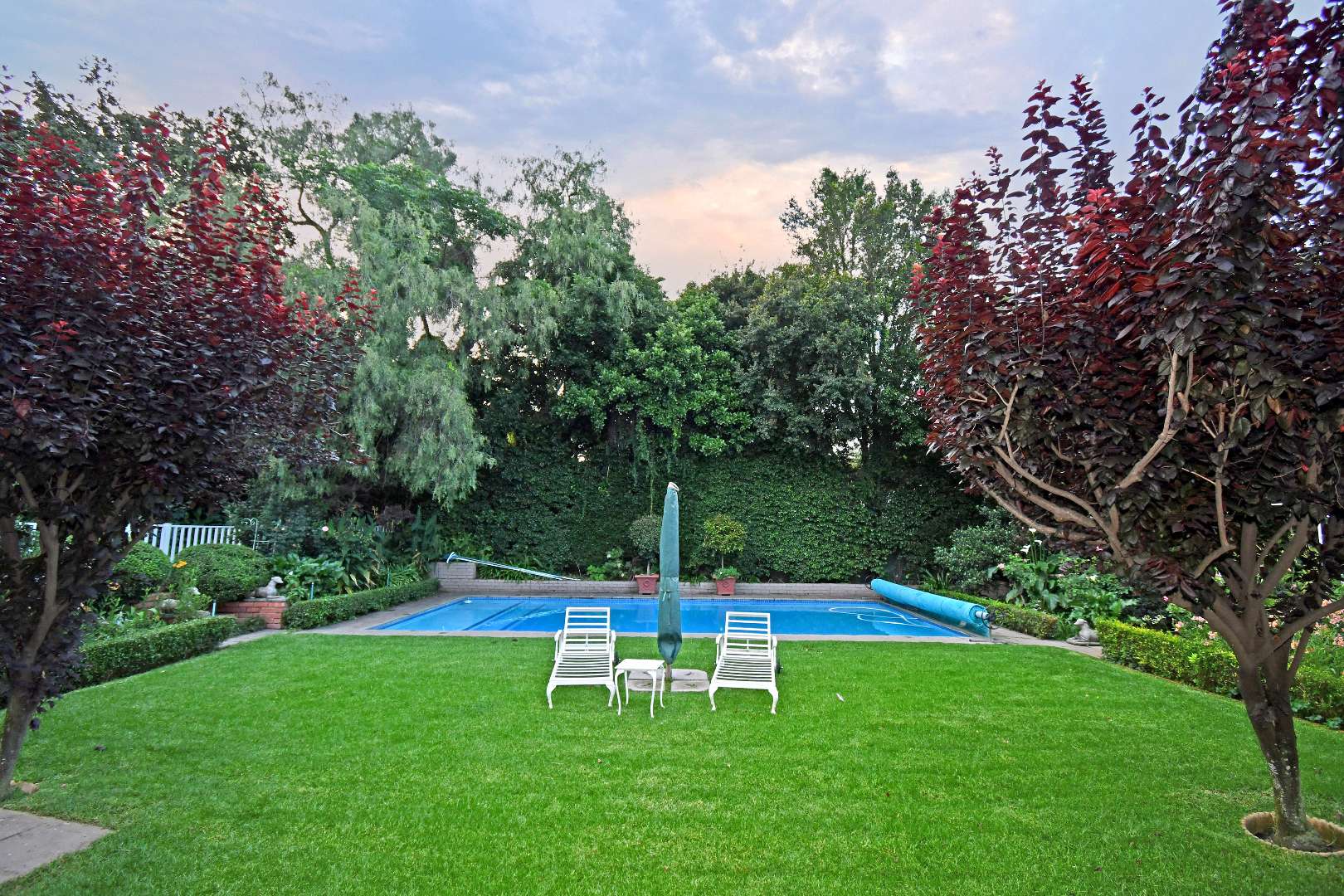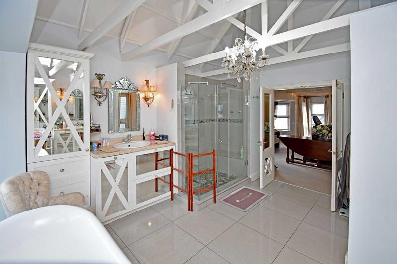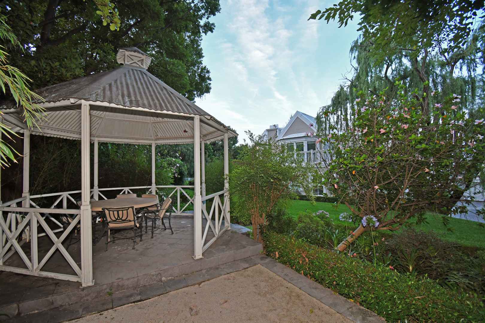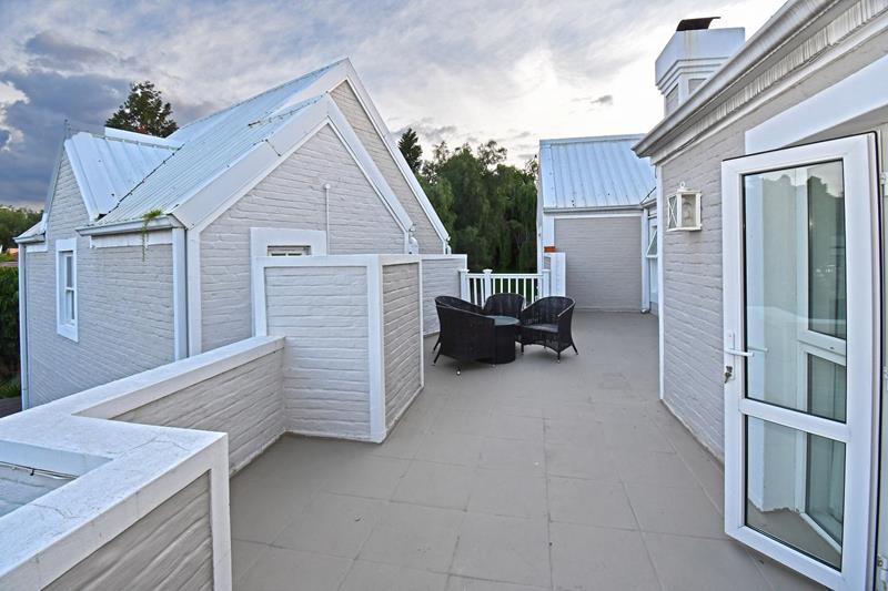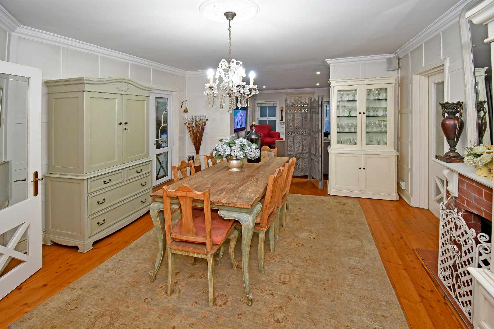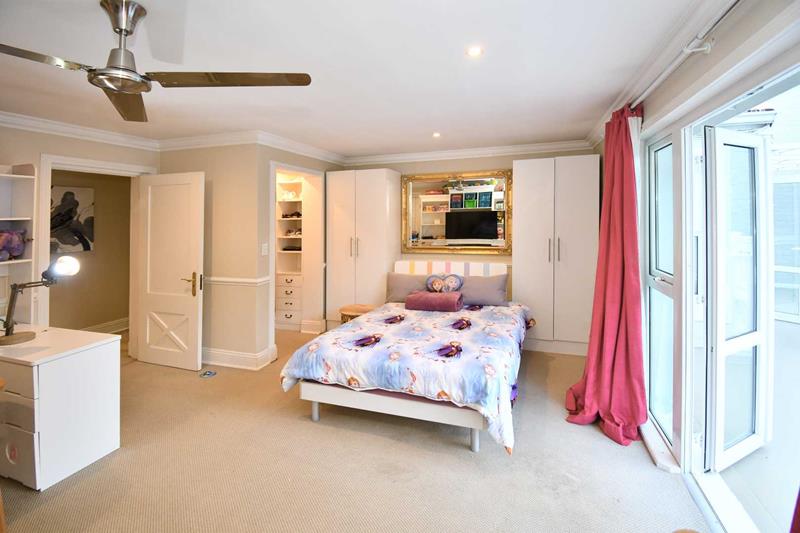 A versatile entertainment wing on the ground level (currently used as an office, with kitchenette, toilet and separate room) opens onto a covered patio with a built-in braai, overlooking the manicured garden and large heated swimming pool. This space can easily serve as a cottage, games room, man cave, studio or work-from-home suite.