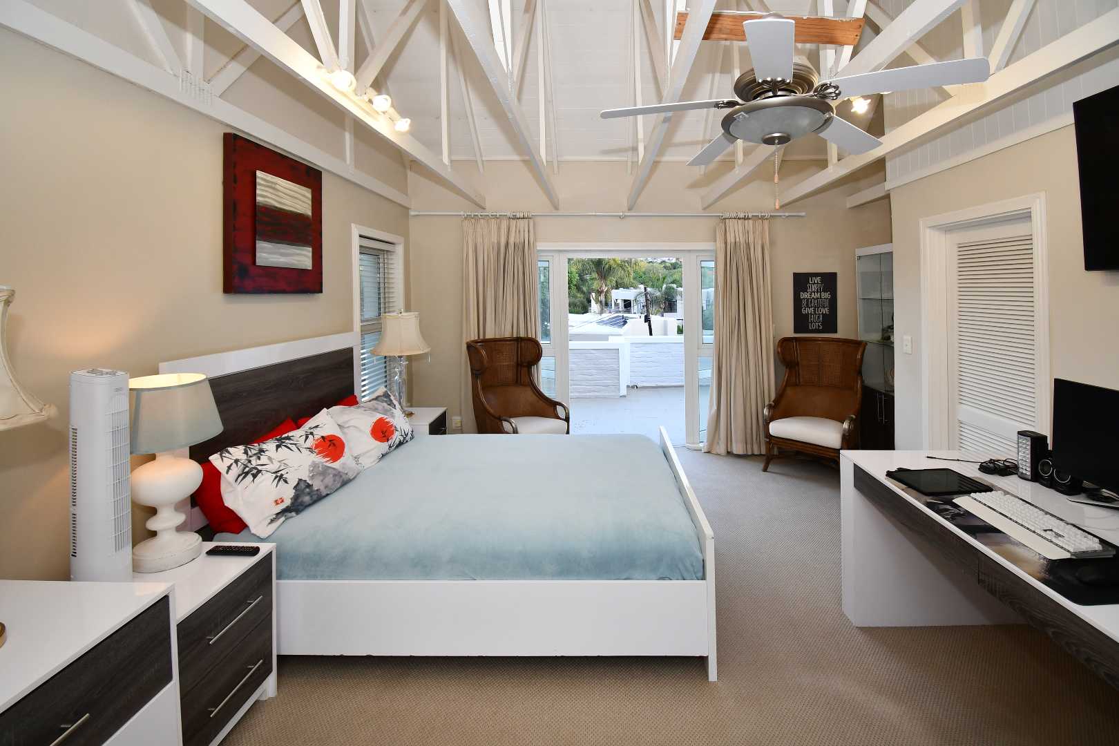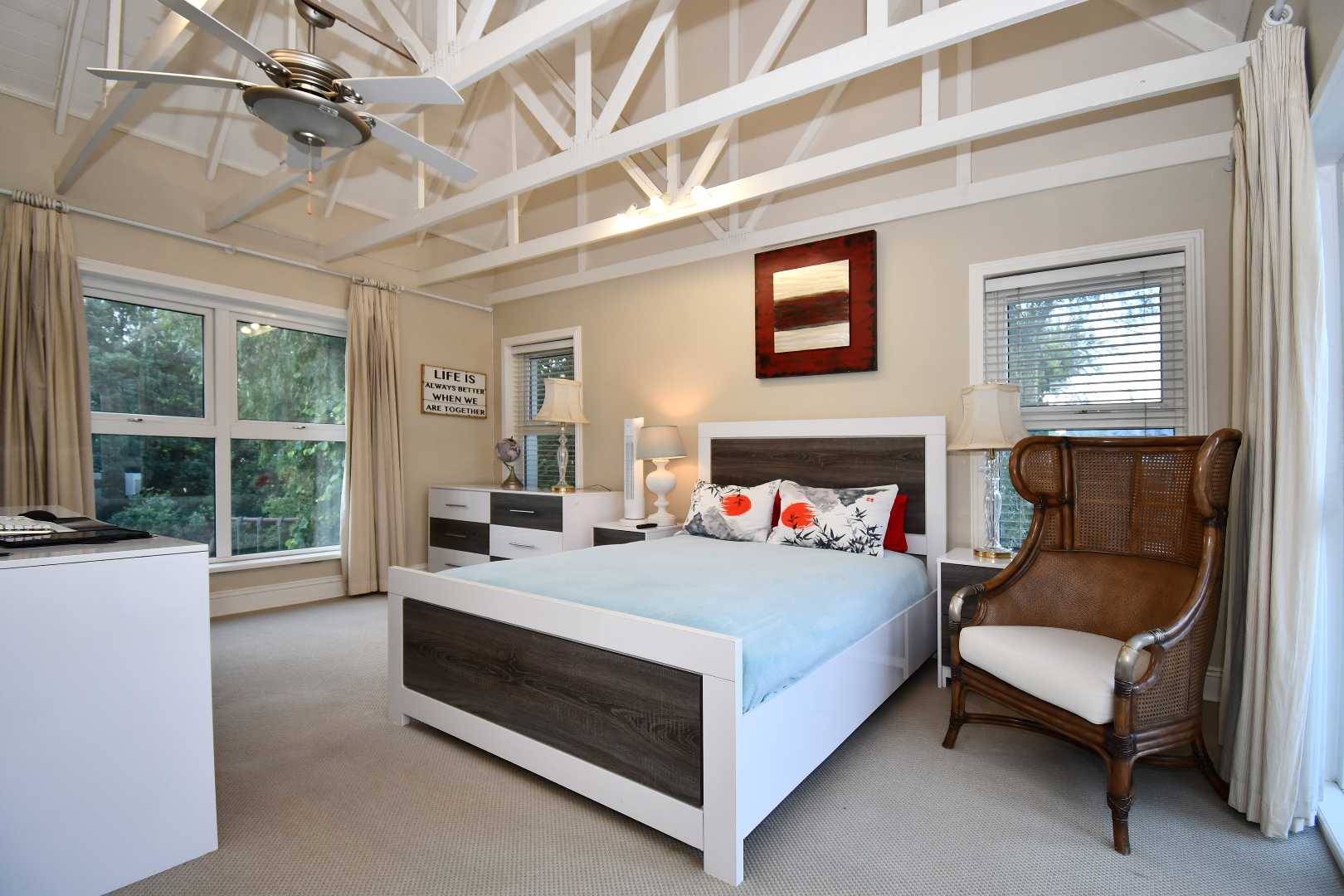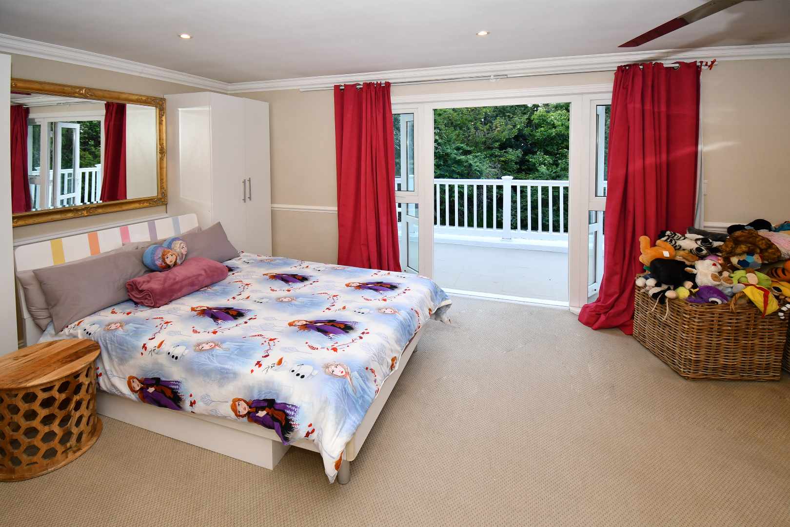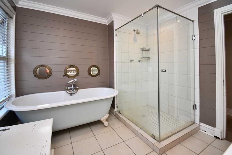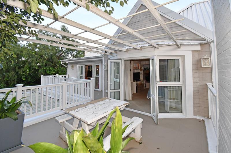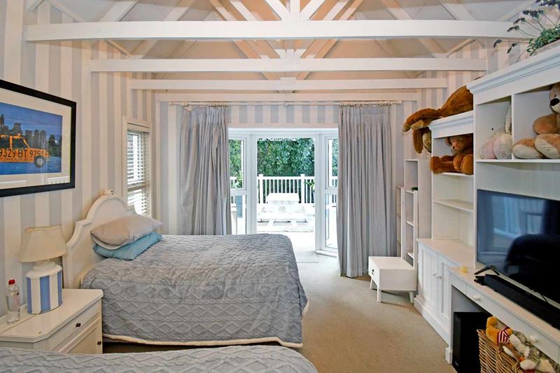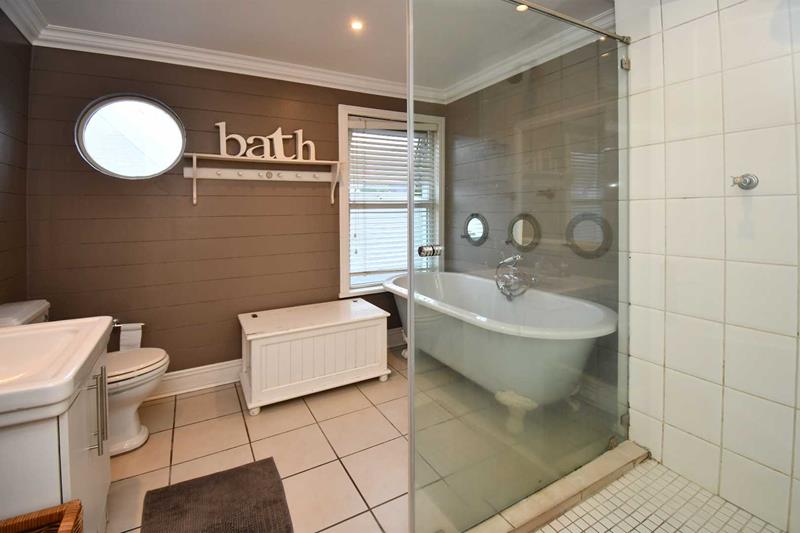 A versatile entertainment wing on the ground level (currently used as an office, with kitchenette, toilet and separate room) opens onto a covered patio with a built-in braai, overlooking the manicured garden and large heated swimming pool. This space can easily serve as a cottage, games room, man cave, studio or work-from-home suite.