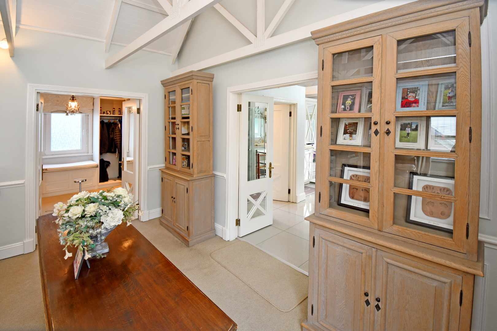 The classic exterior, with soft tones and inviting verandahs creates a storybook first impression as you arrive home. Inside, a welcoming double-volume entrance leads you into generously proportioned living spaces, including a formal lounge with a wood-burning fireplace, a second lounge, a dining room with its own fireplace, and a cosy TV room with fireplace. All of these spaces open onto a graceful L-shaped verandah with views over the garden.