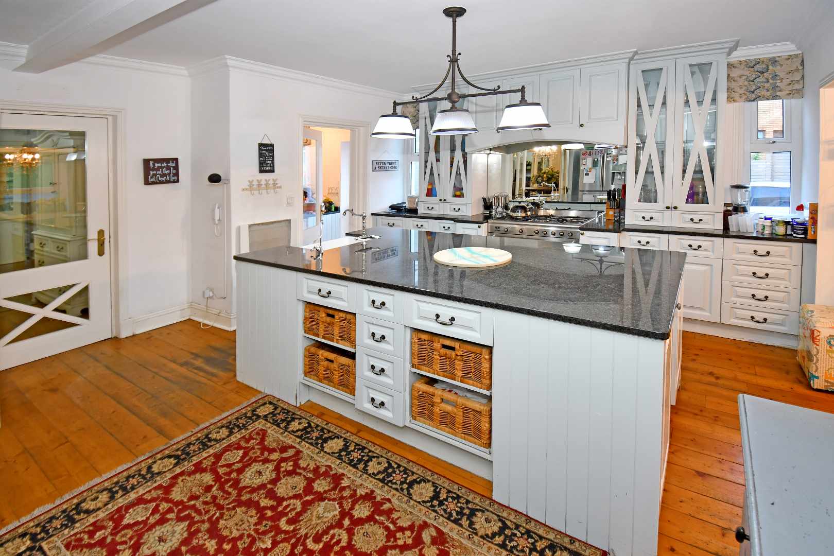The country-style kitchen features a large island, pantry, breakfast nook and separate scullery.... Ideal for family life.