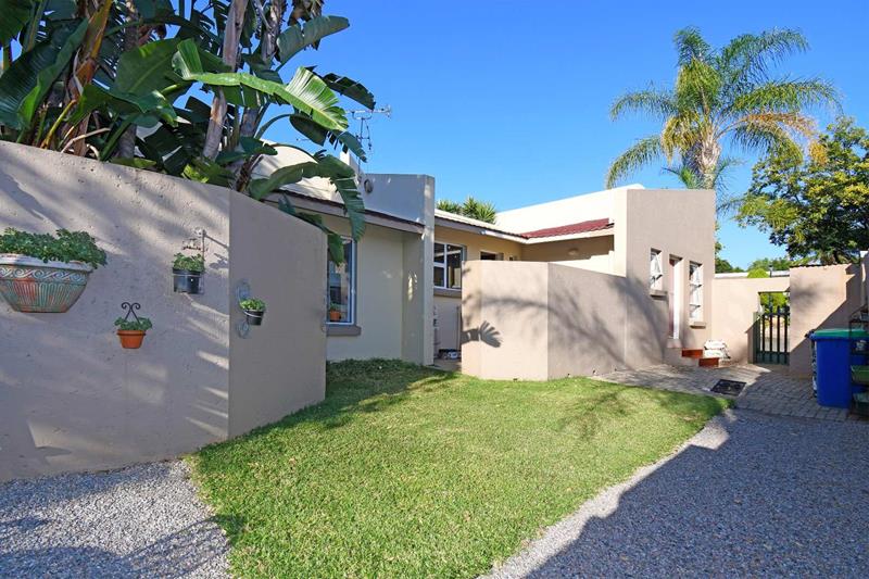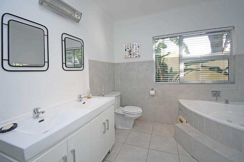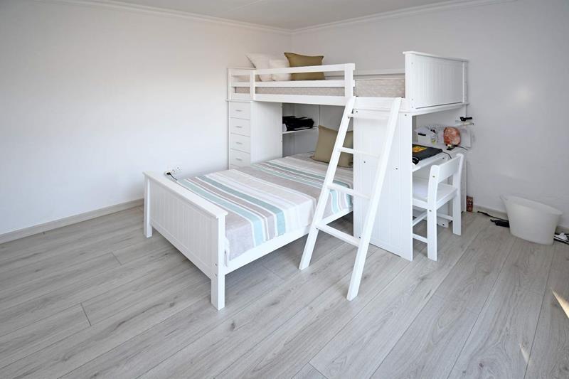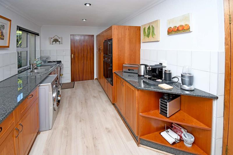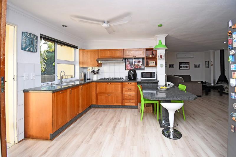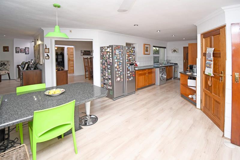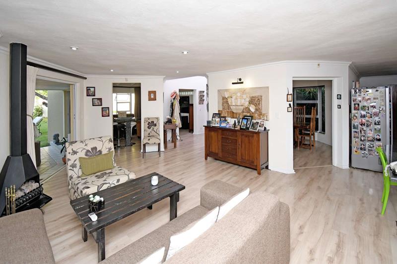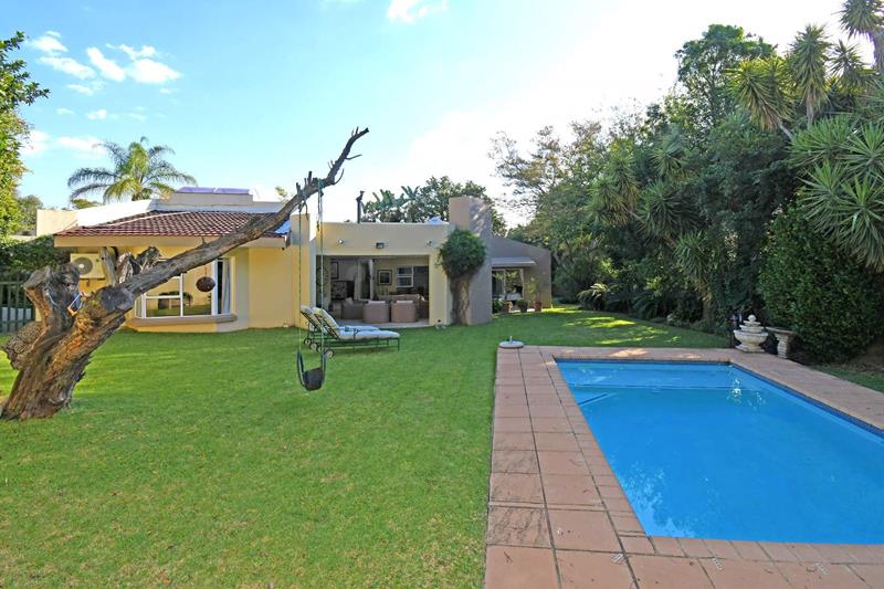 The covered patio provides ample space for family gatherings with built in braai, this opens onto the large garden with swimming pool and loads of green space for kids to play.
