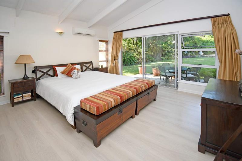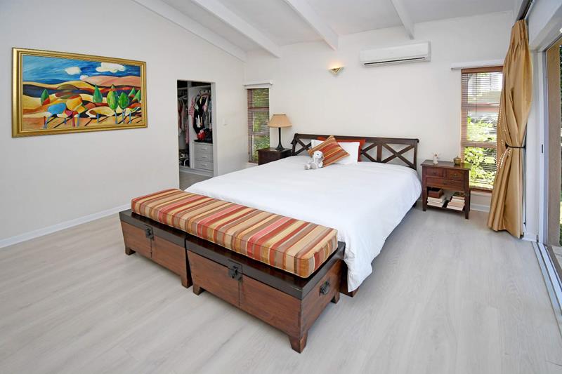 The home offers 3 sizeable bedroom with 2 guest suites sharing a bathroom with large shower. The double volume main bedroom boasts air-conditioning, full en-suite bathroom and access onto a private patio overlooking the garden.
