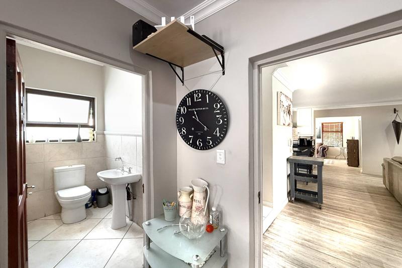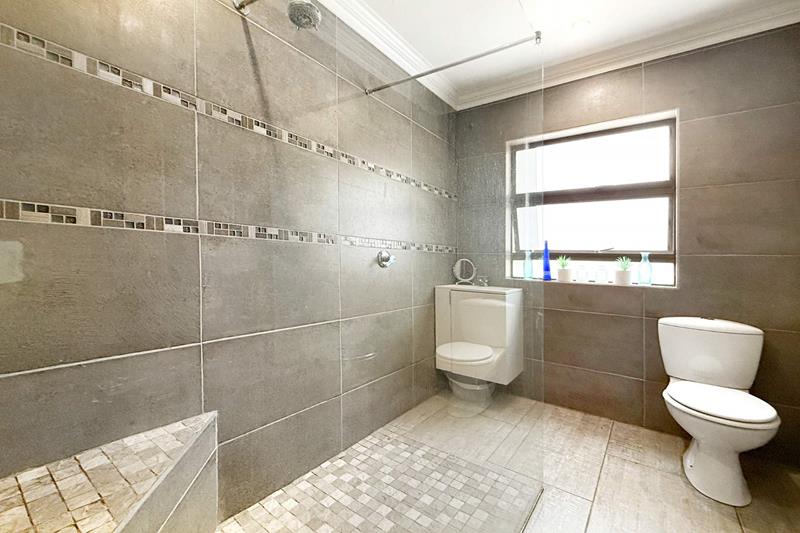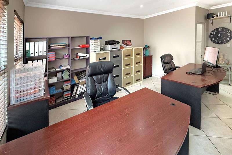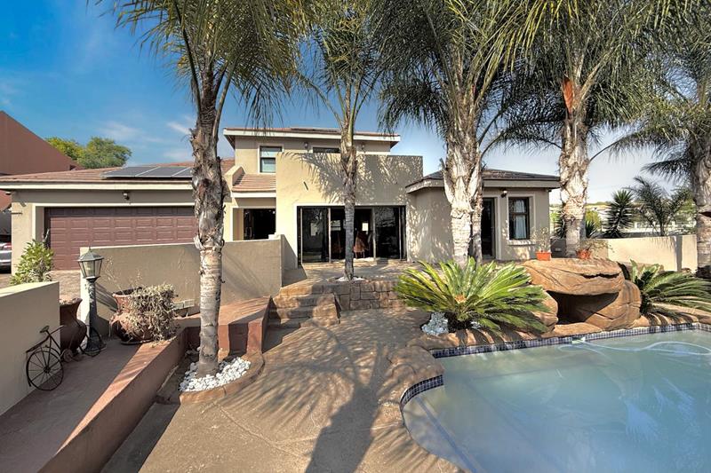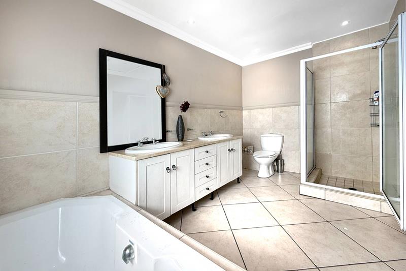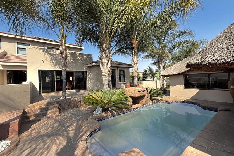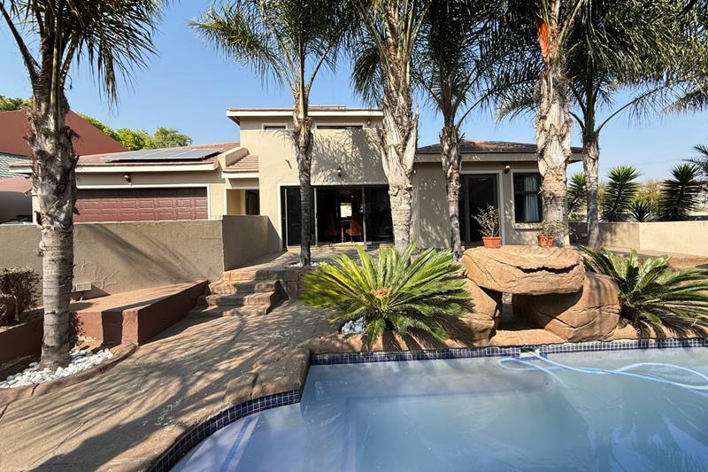 Additional features of this remarkable home include a state of the art security and camera system, a full solar system with a generator that is separately housed, so you are never left in the dark, a gas geyser, and a solar heating system for the pool, ensuring energy efficiency and comfort. With a large driveway that can easily park six additional cars, double automated garage, and a covered parking space, this home is not just a residence; it’s a lifestyle.