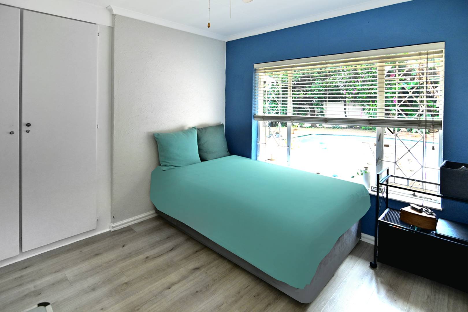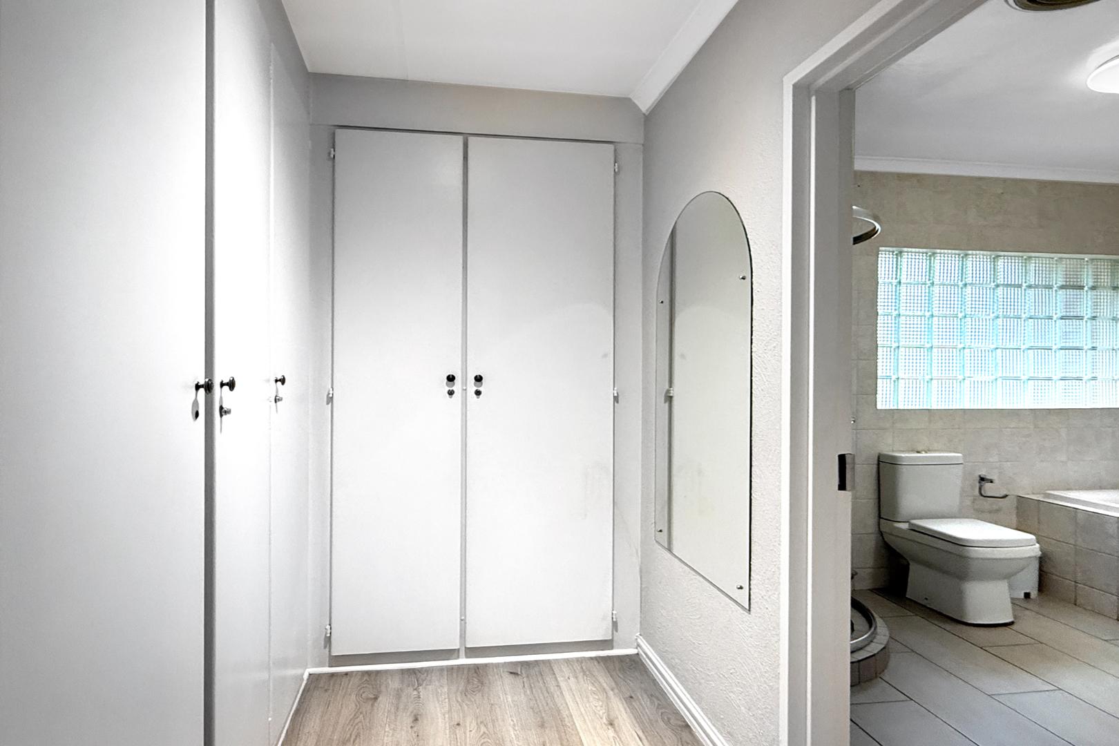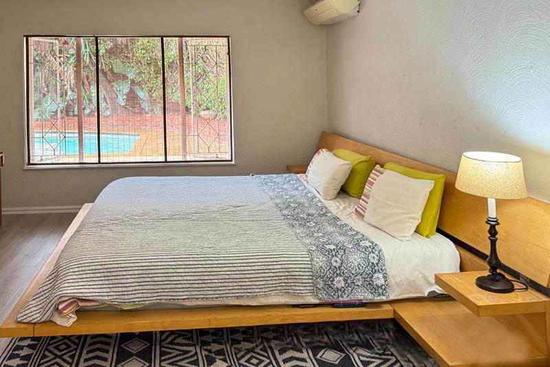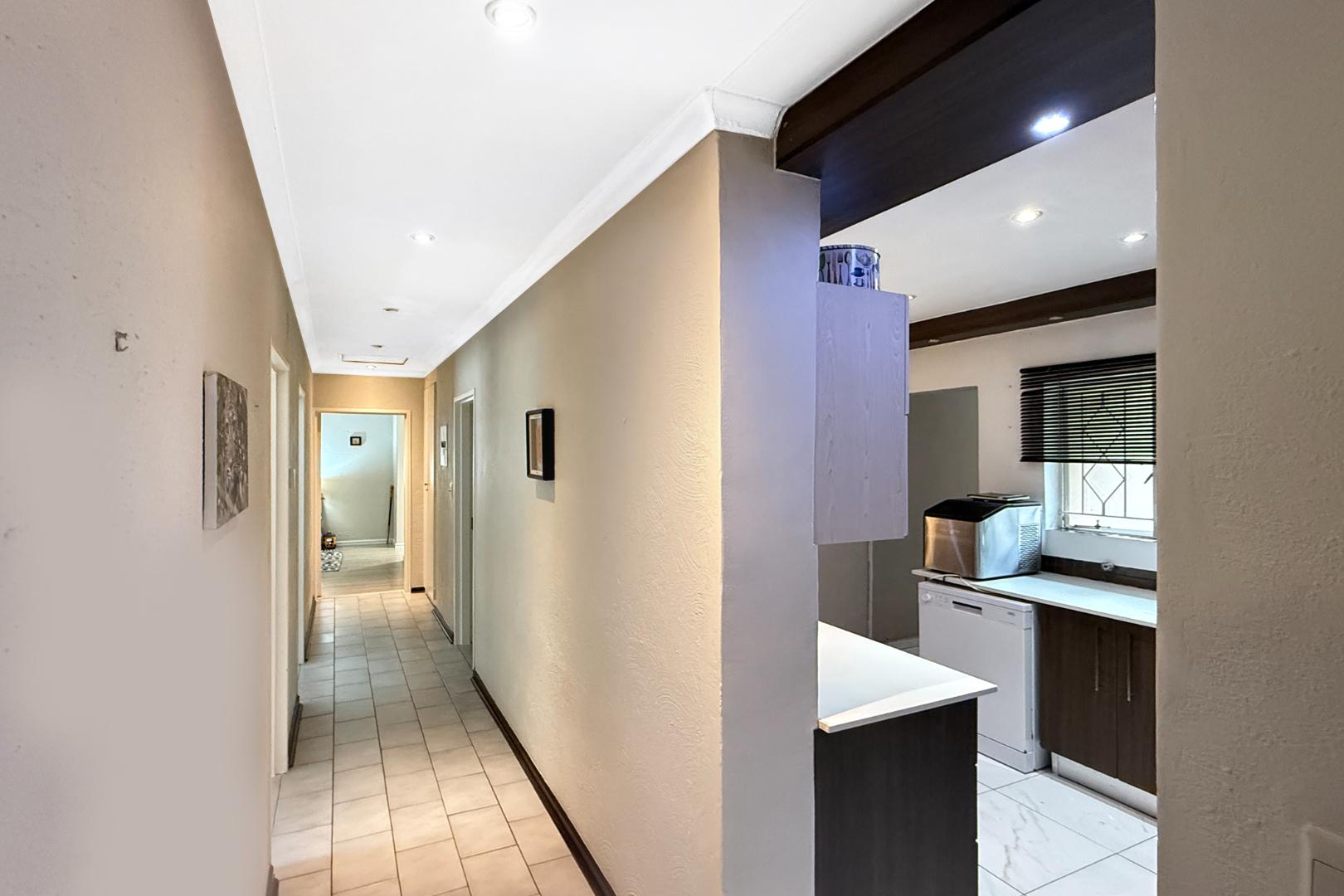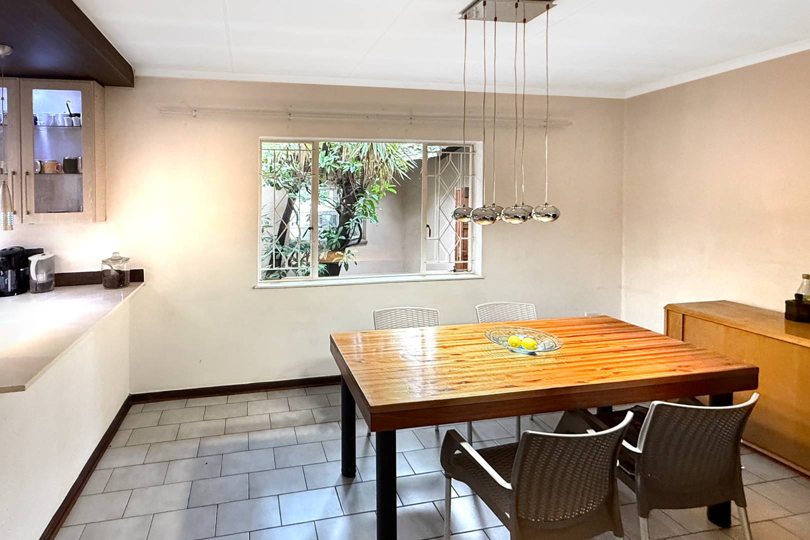 With two sunny bedrooms sharing a full bathroom, and a luxurious Master Bedroom boasting an en-suite, generous cupboard space, and air conditioning, this home is designed for comfort and convenience. The laminate flooring in the bedrooms adds a touch of warmth, while the tiled areas throughout the rest of the house ensure easy maintenance.