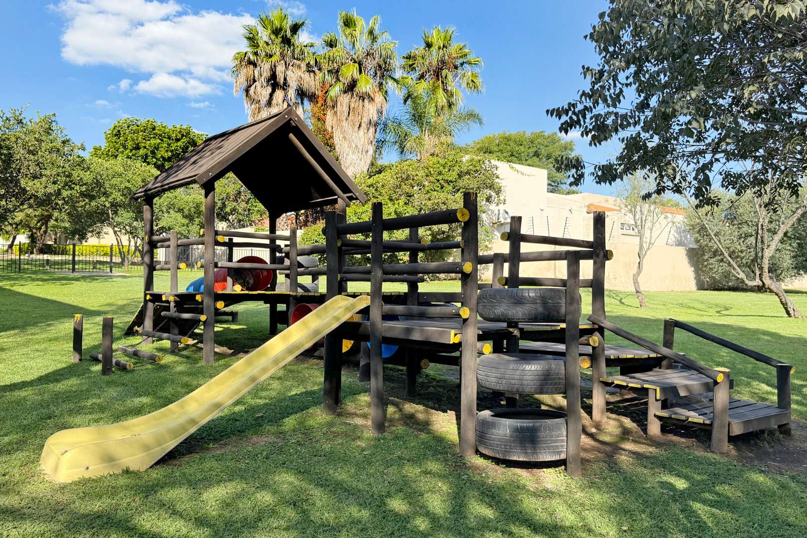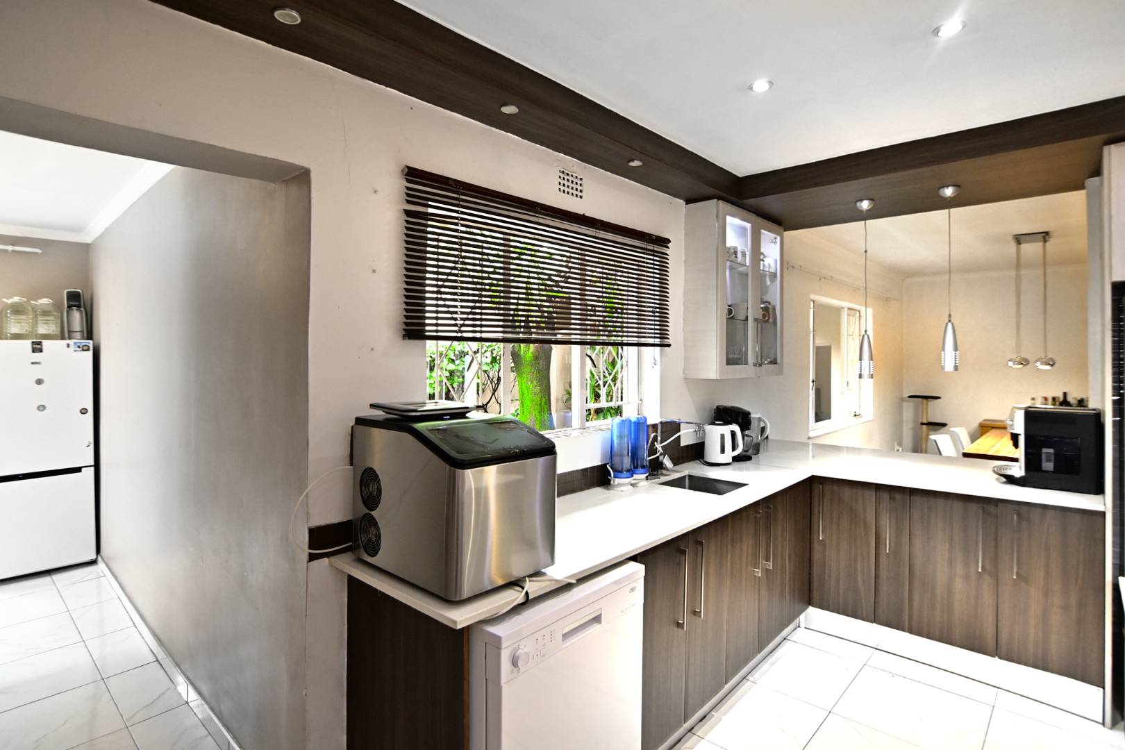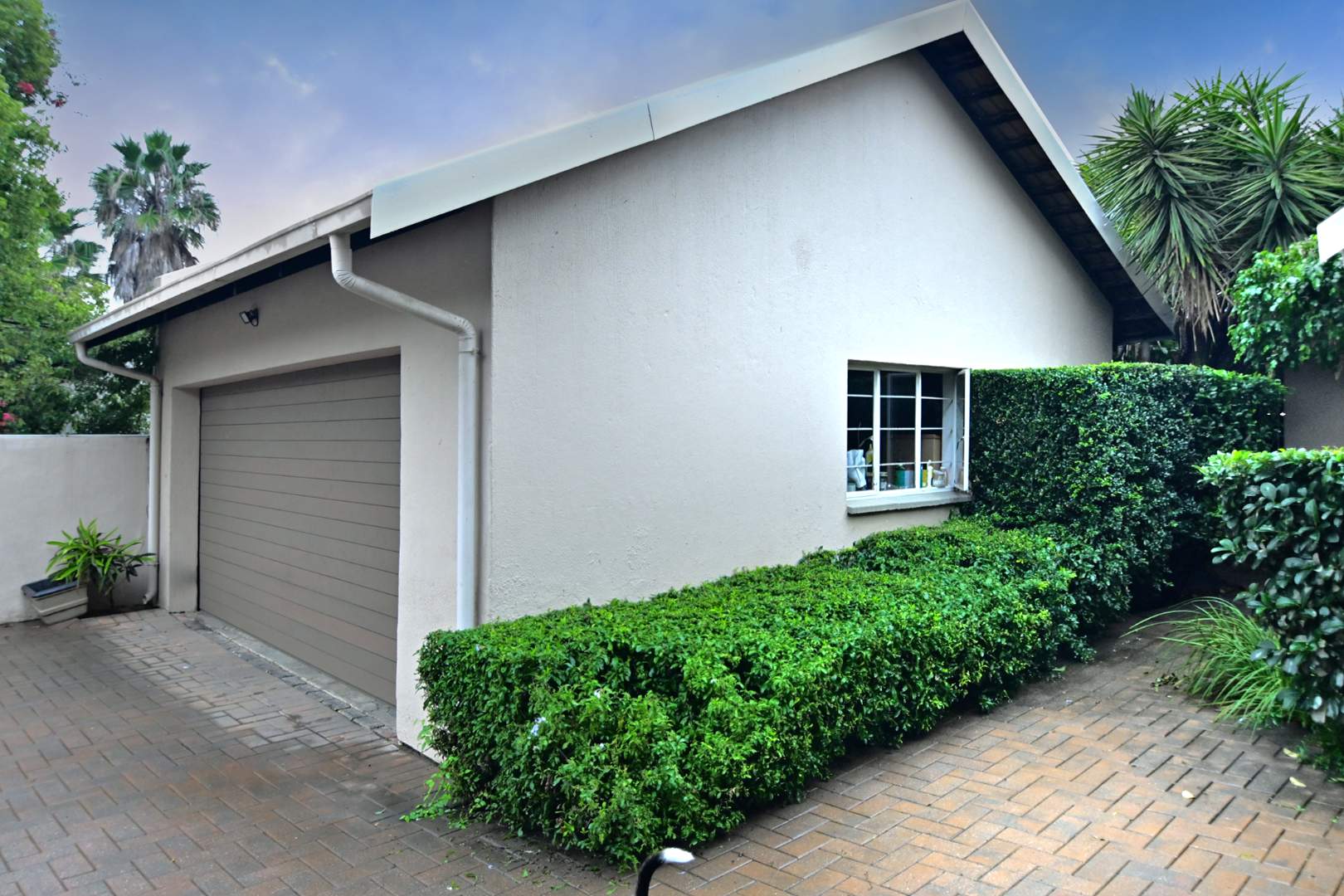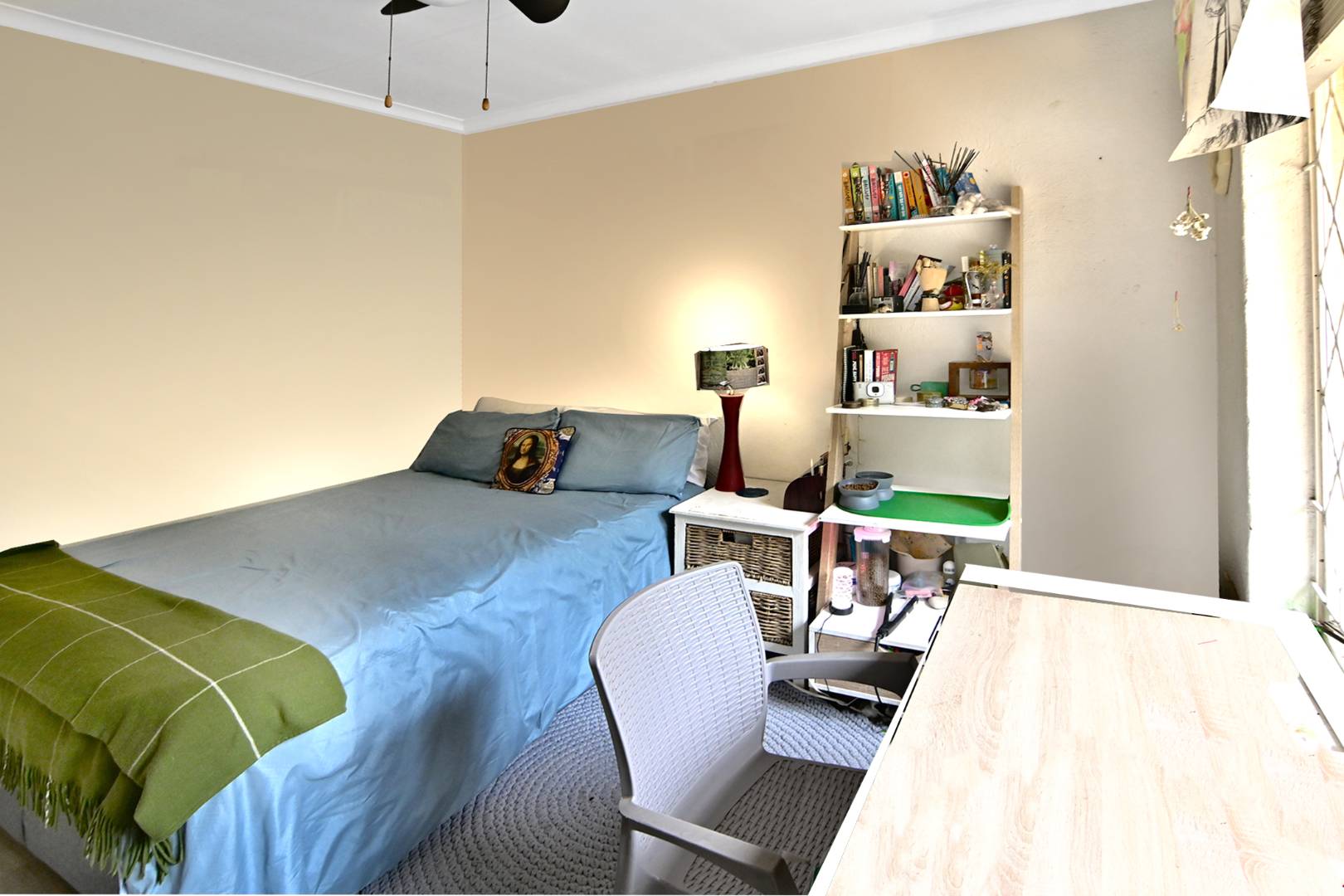 With two sunny bedrooms sharing a full bathroom, and a luxurious Master Bedroom boasting an en-suite, generous cupboard space, and air conditioning, this home is designed for comfort and convenience. The laminate flooring in the bedrooms adds a touch of warmth, while the tiled areas throughout the rest of the house ensure easy maintenance.