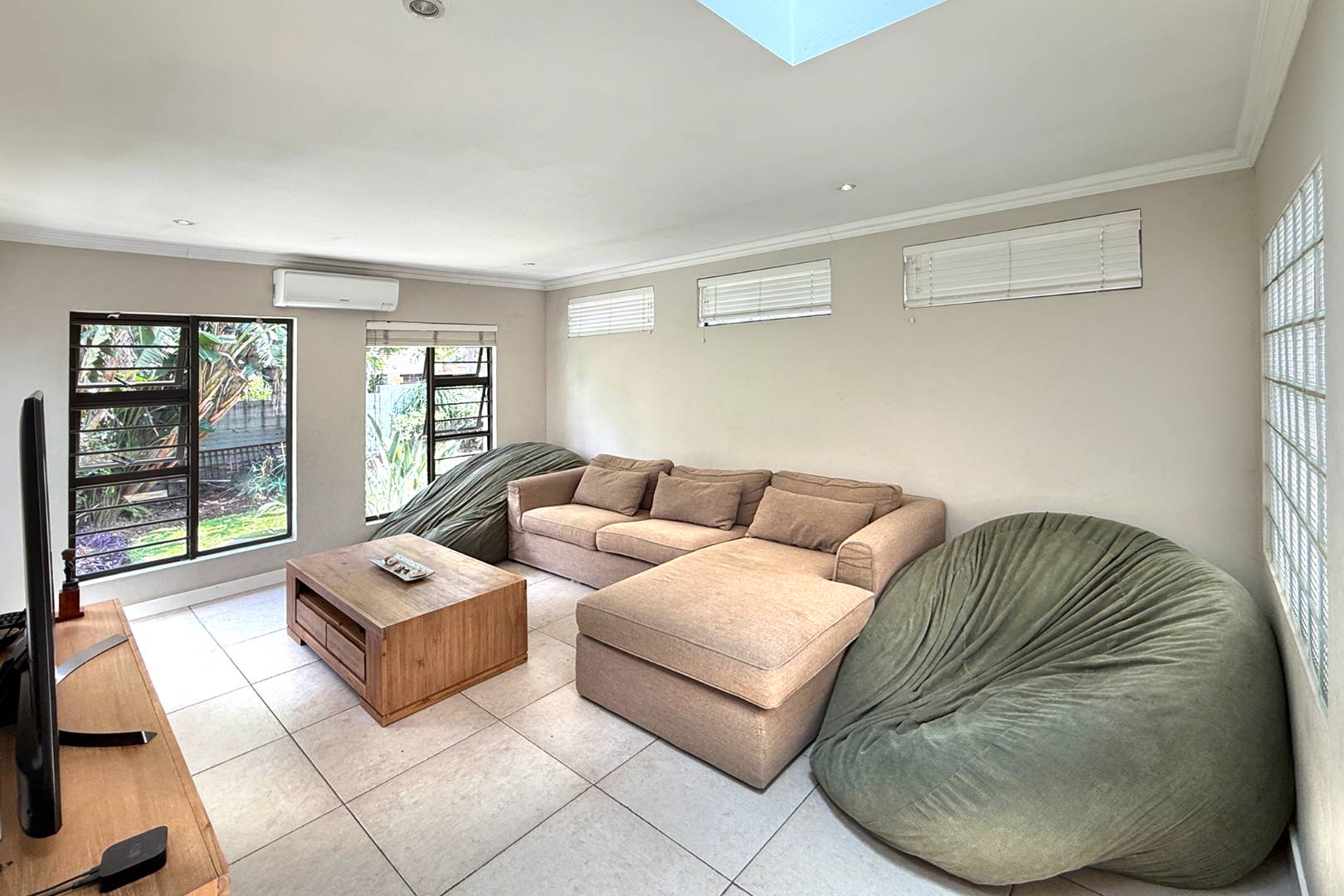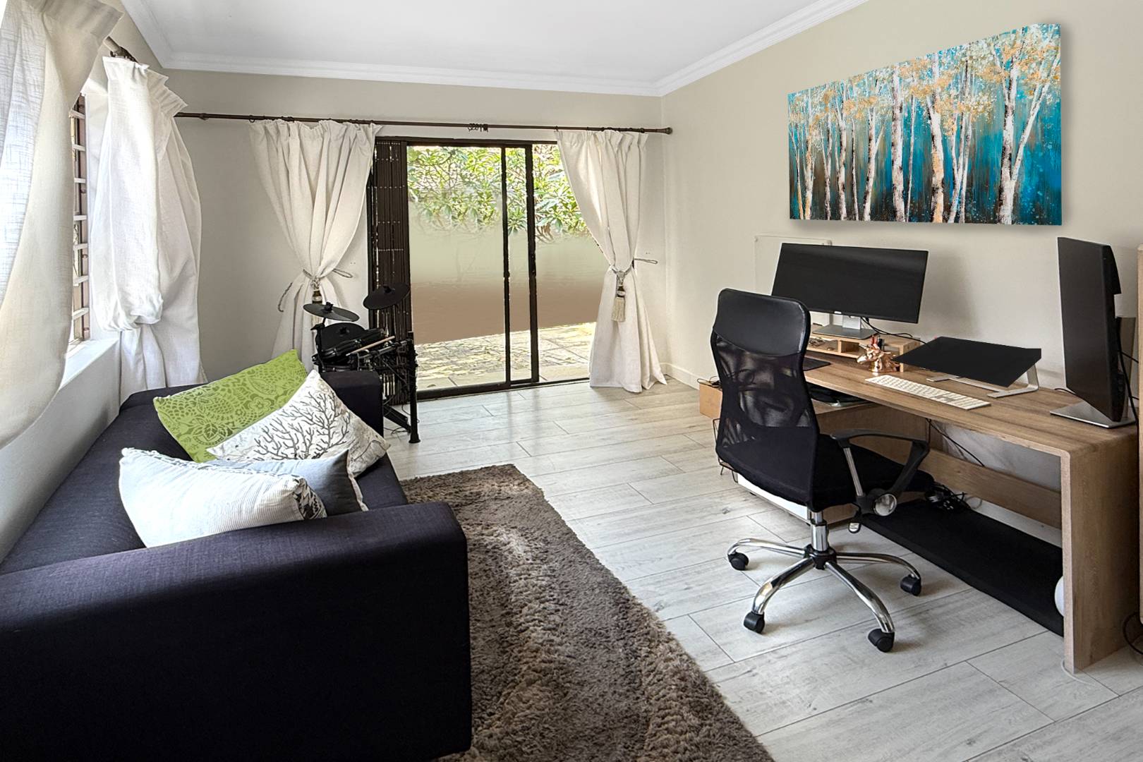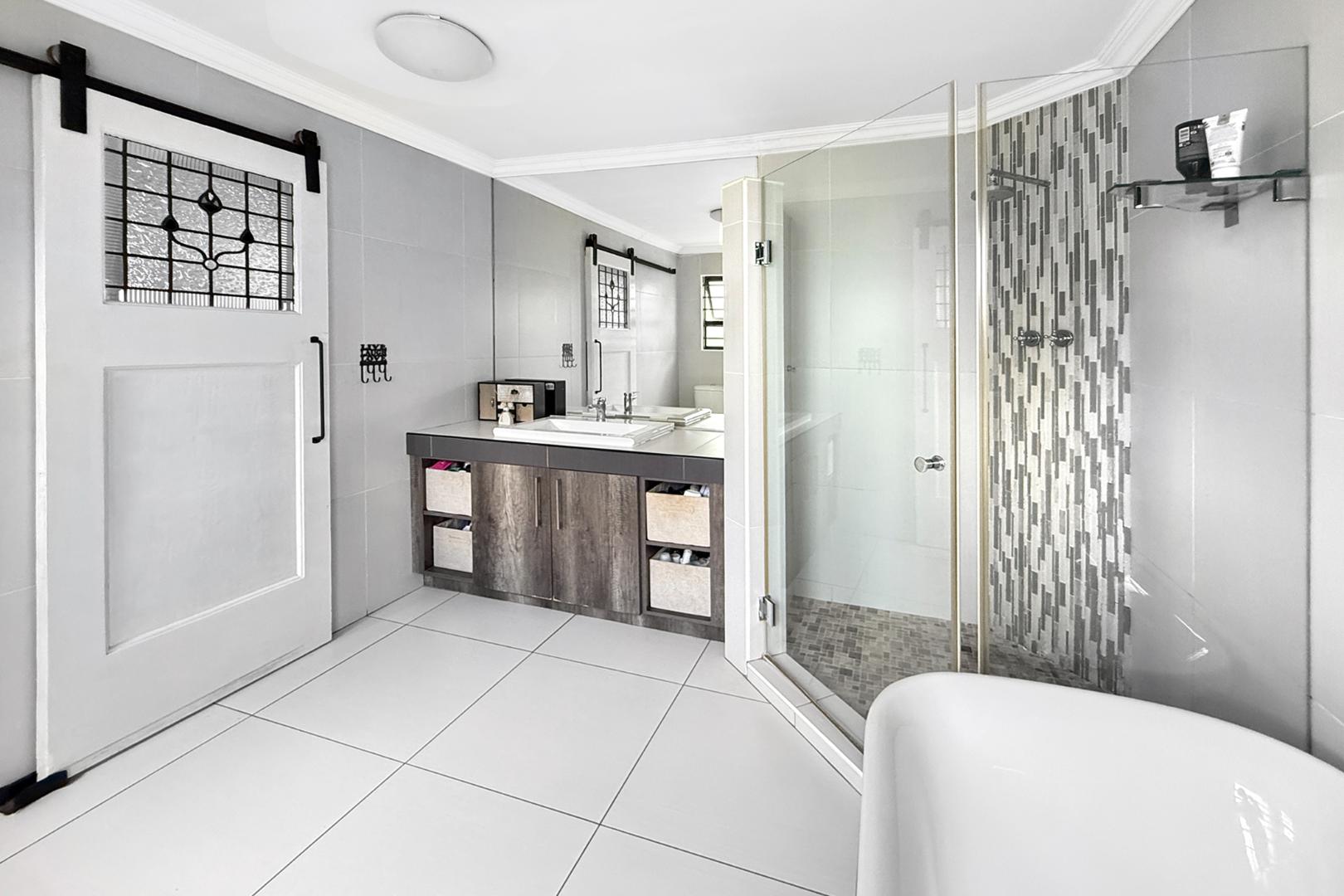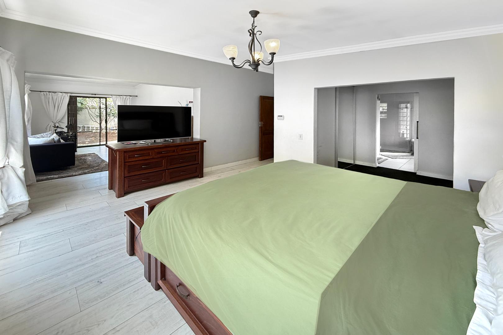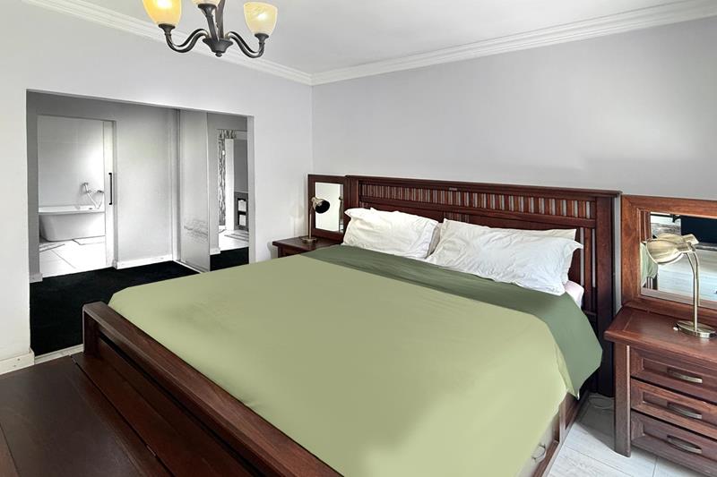 The dining room flows effortlessly to a covered patio, where you can enjoy alfresco dining while overlooking the beautifully landscaped garden and sparkling pool. Imagine summer days spent lounging by the pool or hosting braais with family and friends in this idyllic outdoor space.