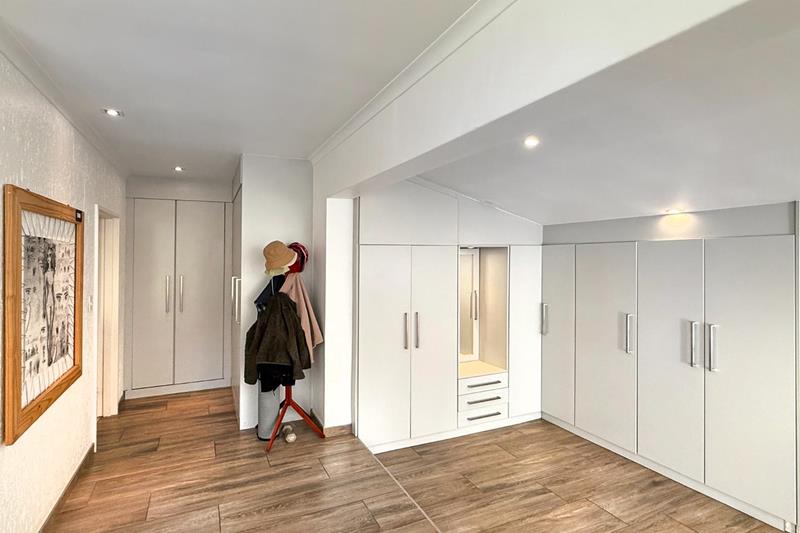 This exceptional property is designed for modern living, featuring three garages and an additional trailer garage for all your storage needs, as well as staff accommodation. This home also boasts a solar geyser, an electric geyser, and an under sink geyser in the kitchen.