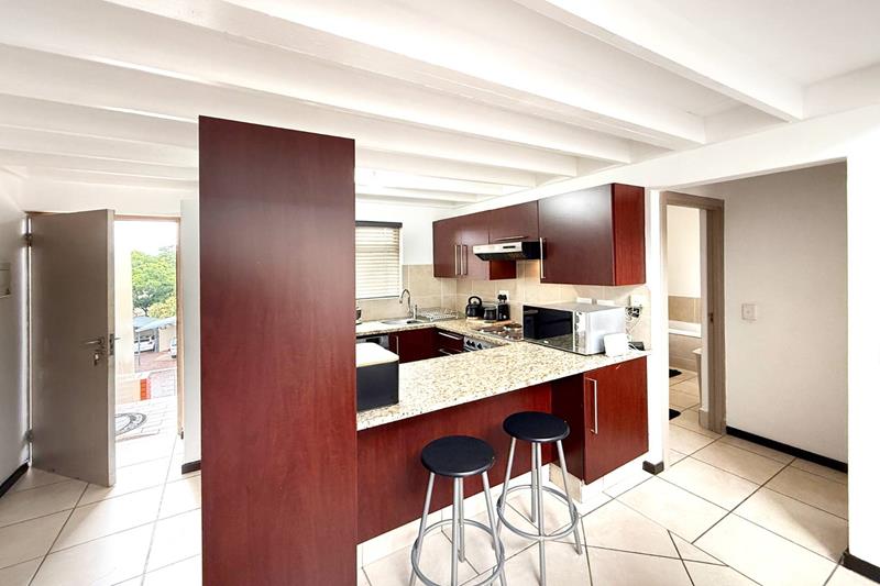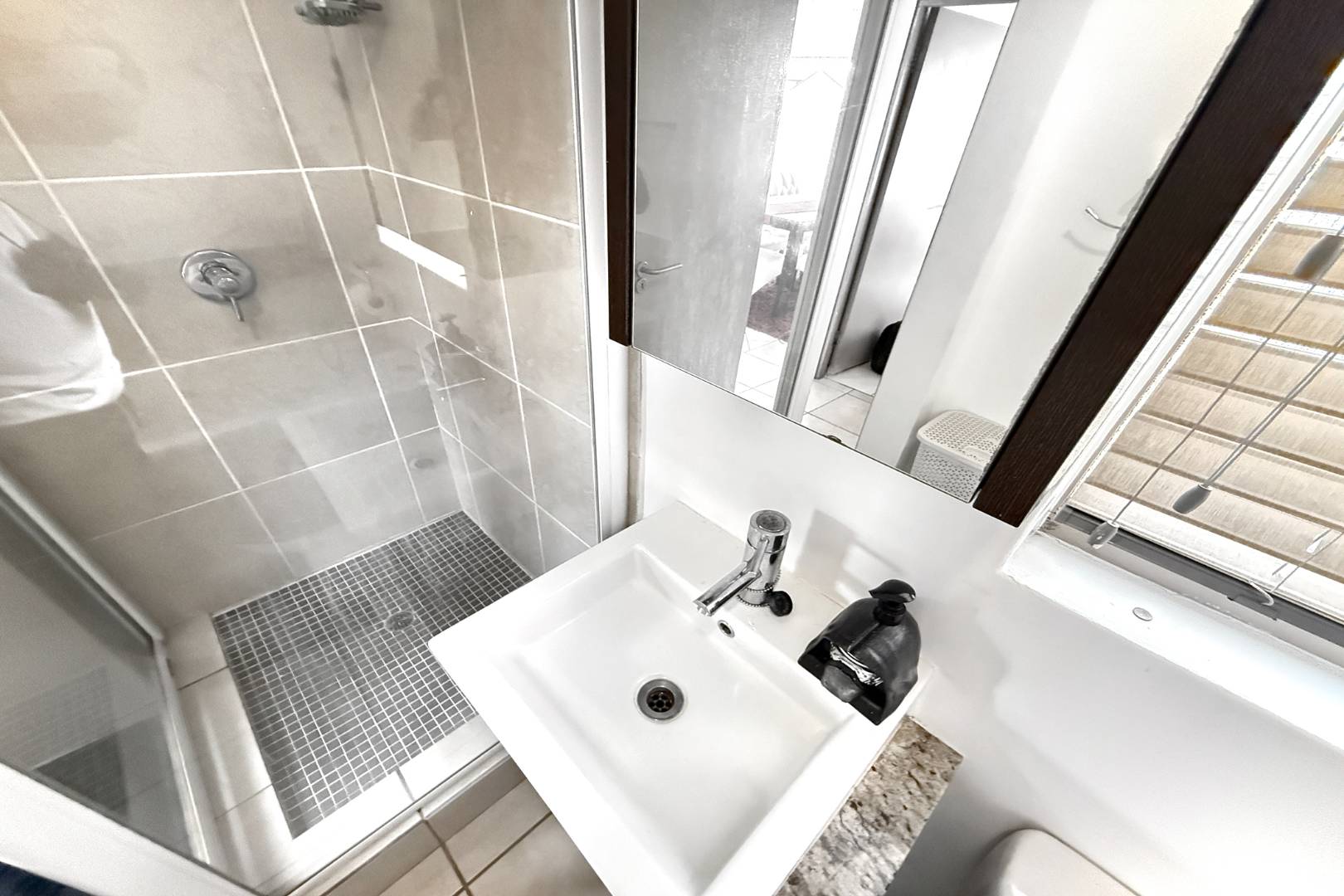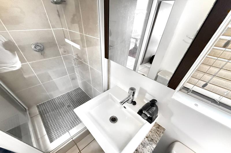 The generously sized bedroom has plenty of cupboard space, and the full bathroom is equipped with all the necessary amenities, ensuring comfort and privacy.