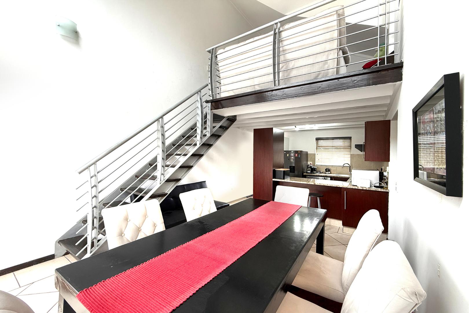 The loft area adds an extra dimension to your living space, perfect for a home office or an additional lounge. Large windows flood the space with natural light, creating a warm and inviting atmosphere that makes you feel right at home.