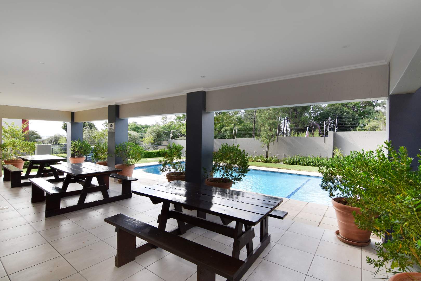 There is a fully functional clubhouse with a gym, braai facilities and a swimming pool.