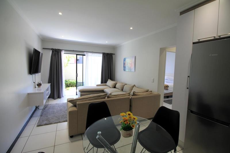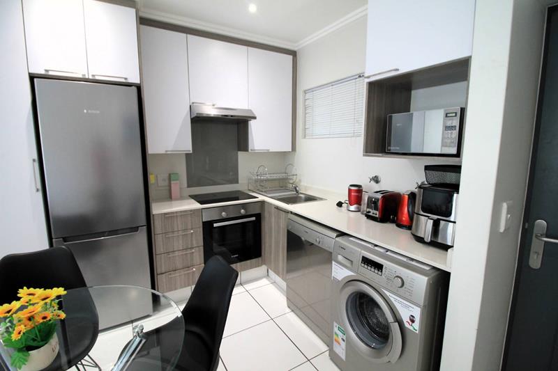 This apartment has an an open-plan kitchen and large lounge that leads onto a covered patio and well-manicured garden. The kitchen is modern with space for 2 appliances and caesar stone tops.