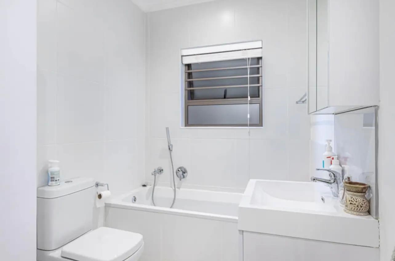 The main bedroom is sunny and bright, with a private ensuite bathroom that has a shower, toilet and vanity, while the additional bathroom is a full bathroom with a bath, shower, toilet and vanity.
