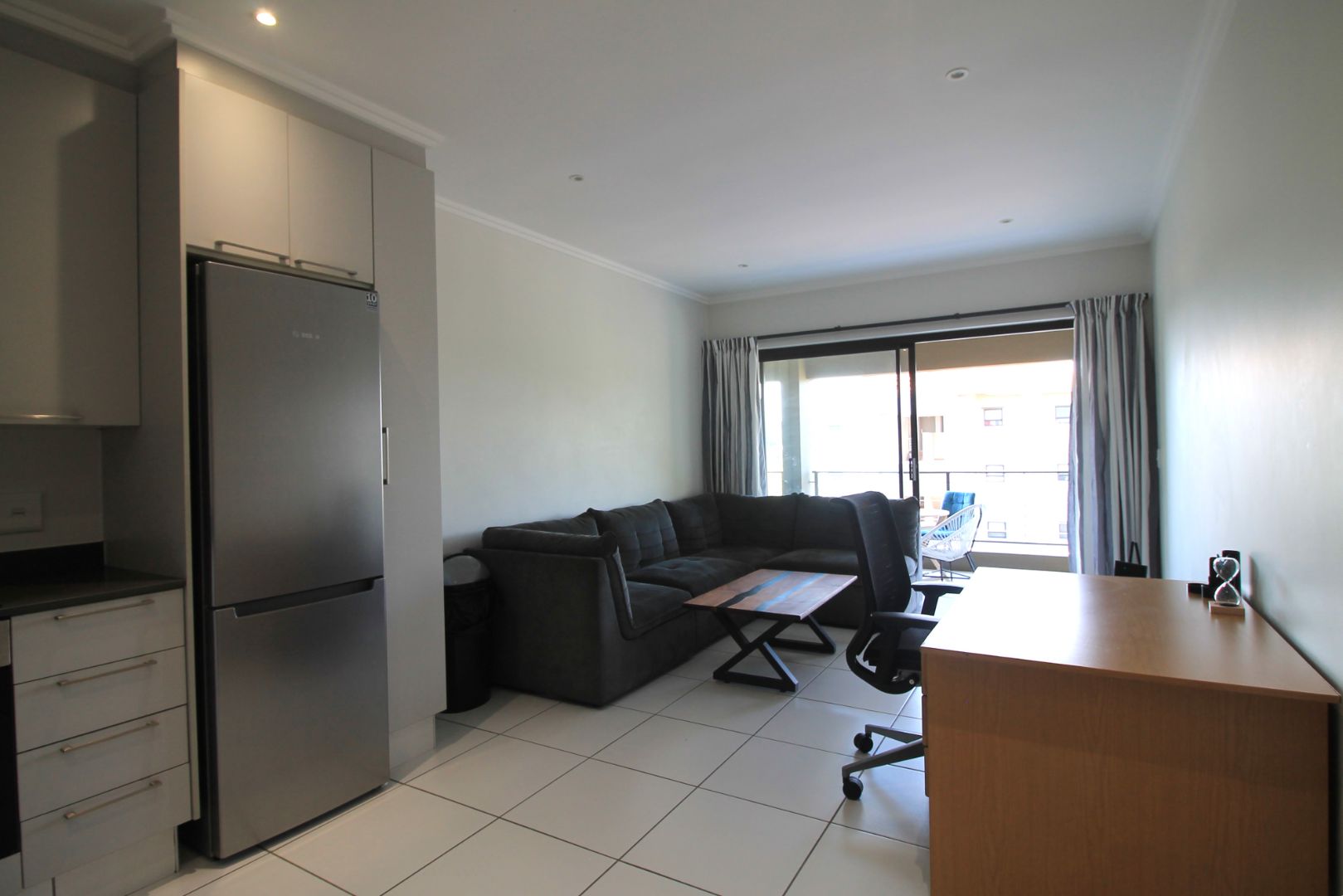 The living area is tiled, and leads out to the large covered and private balcony