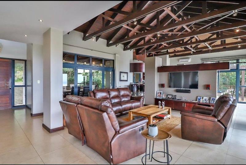 Welcome to your dream home nestled within the prestigious Simbithi Eco Estate, a sanctuary of luxury and natural beauty. This exquisite double-story residence boasts five bedrooms and five bathrooms, offering ample space for family and guests. Located on the golf side of the estate, it provides an unparalleled lifestyle with stunning 180-degree sea views.