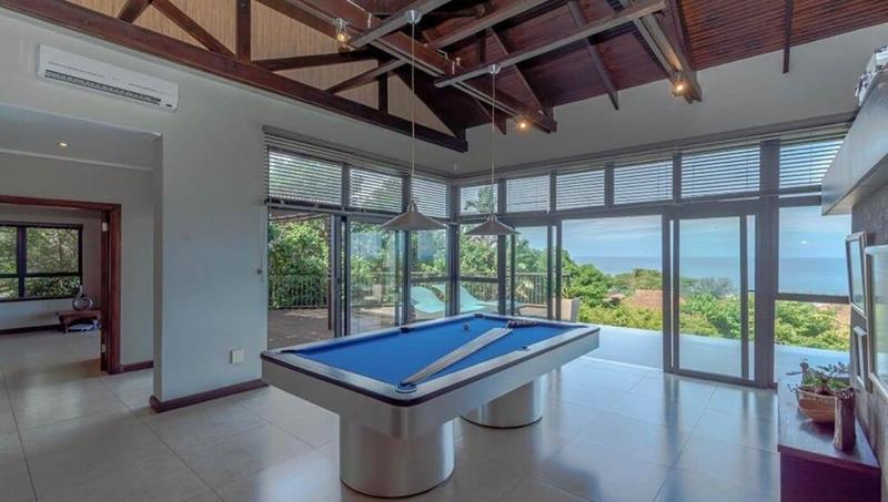 Upon entering, you are greeted by an expansive open-plan living and entertainment area that seamlessly integrates indoor and outdoor living. The flow rim pool adds a touch of elegance, perfect for relaxing while enjoying the panoramic ocean vistas. The sheltered westerly deck is an entertainer's delight, featuring a built-in braai and bar area, ideal for hosting gatherings with friends and family.