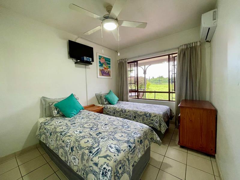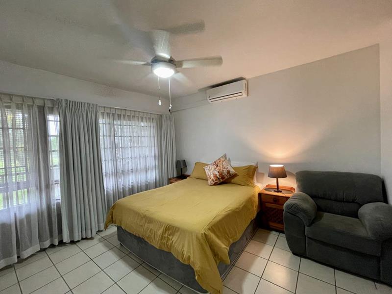 The large main bedroom is a peaceful retreat with air-conditioning and direct access to a generous covered patio overlooking lush green views. His-and-her built-in cupboards lead you through to a stunningly renovated en-suite bathroom featuring modern finishes and a large walk-in shower. The two additional guest bedrooms are well-sized and share a full bathroom, with one of the rooms also equipped with air-conditioning for extra comfort.