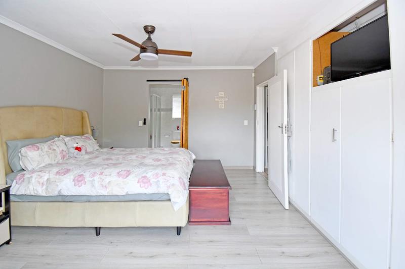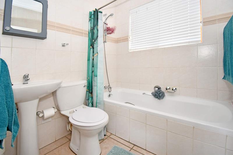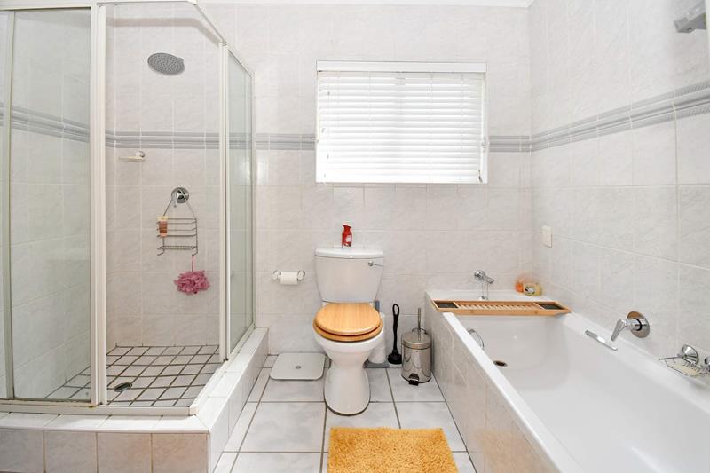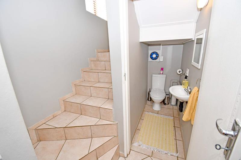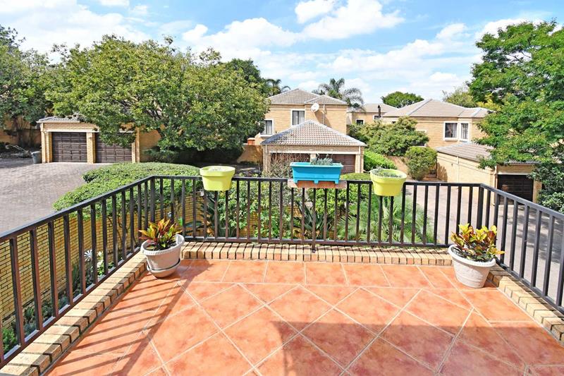 Upstairs offers two well-sized bedrooms with built-in cupboards. The main bedroom opens onto a private balcony and includes an en-suite bathroom, while the second bedroom is serviced by an additional bathroom.