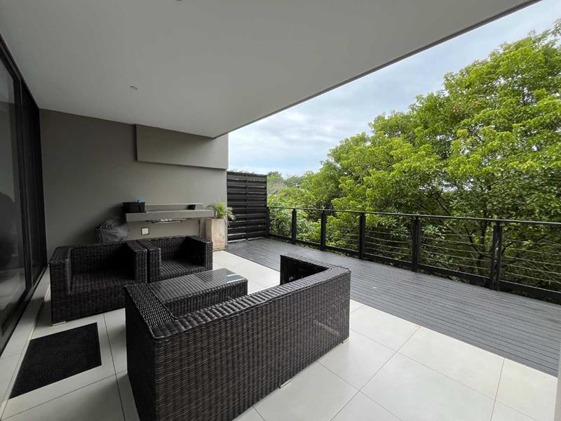 Nestled in the prestigious Zimbali Estate, A 3-bedroom duplex offers a blend of modern living and natural beauty. Upon entering, you’ll be greeted by an expansive open-plan living area which seamlessly connects the kitchen, dining, and living areas to a spacious deck with a built-in braai, ideal for outdoor entertaining. The kitchens are equipped with contemporary appliances, including a scullery and a guest bathroom.