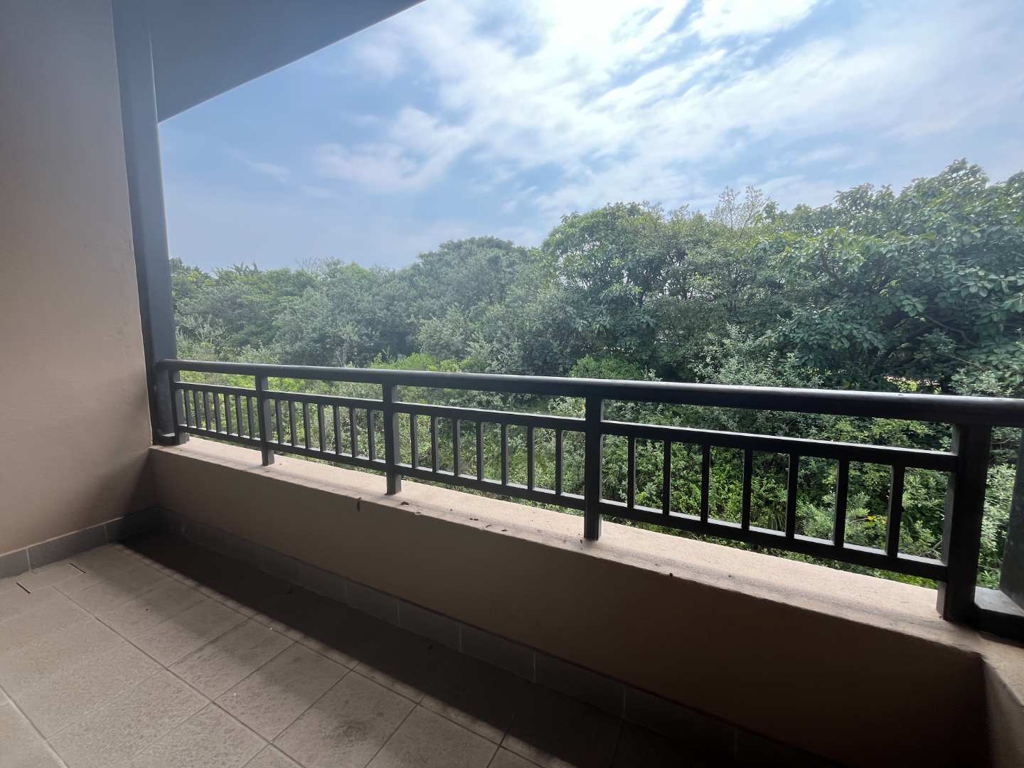 Step out onto the private balcony and enjoy tranquil views overlooking the lush green coastal landscaping of Zimbali — a serene backdrop that enhances the holiday appeal of this property.