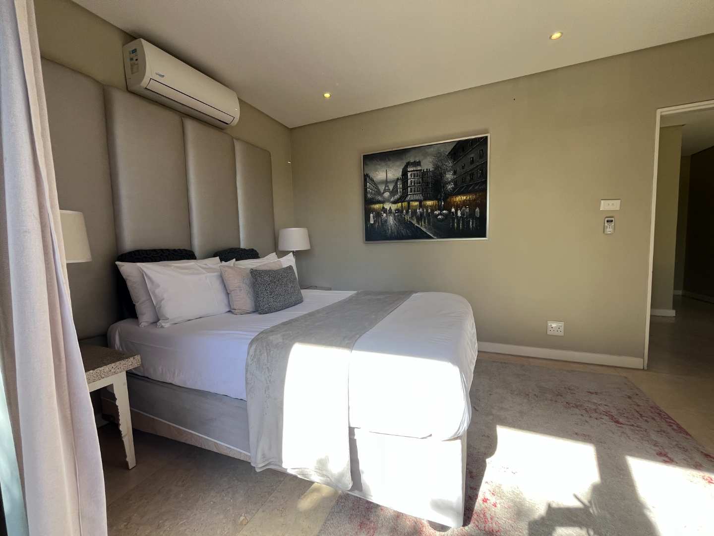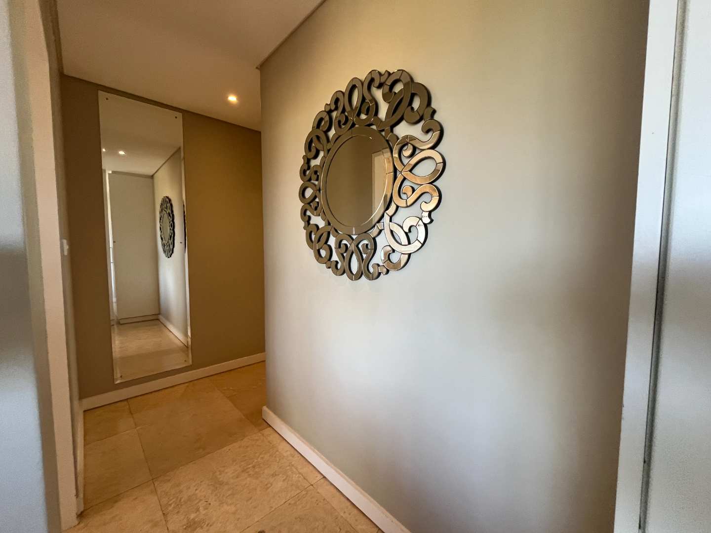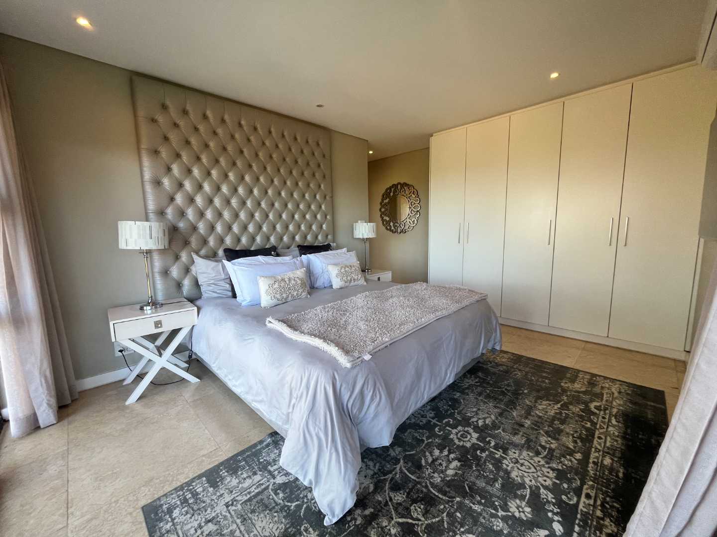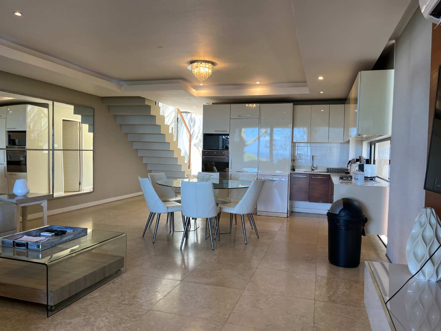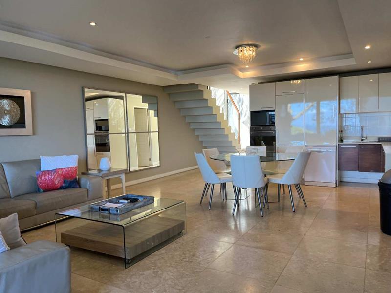 This elegant apartment boasts a distant sea view, creating the perfect backdrop for relaxed living. The open-plan layout features a fitted kitchen with a sizeable scullery, seamlessly flowing into the living and dining areas. Step outside onto a private patio and enclosed garden — an ideal space to unwind, entertain, or enjoy breathtaking sunsets with a glass of wine in hand.