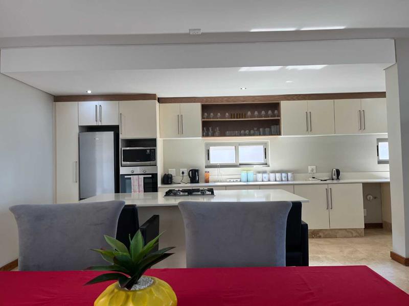 Step into a large open-plan living area that flows seamlessly into a modern fitted kitchen with a gas hob, perfect for easy entertaining. The sliding doors open onto a generous balcony, where you can unwind to the soothing sounds of the ocean in the distance.