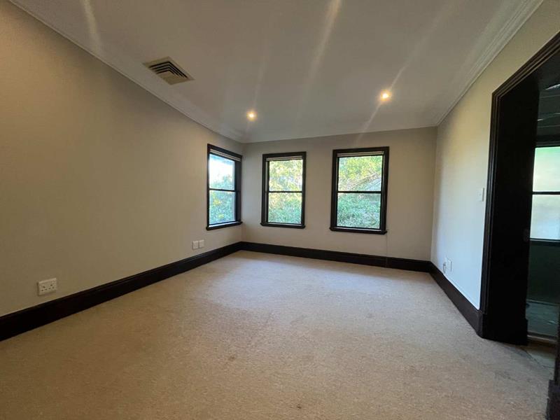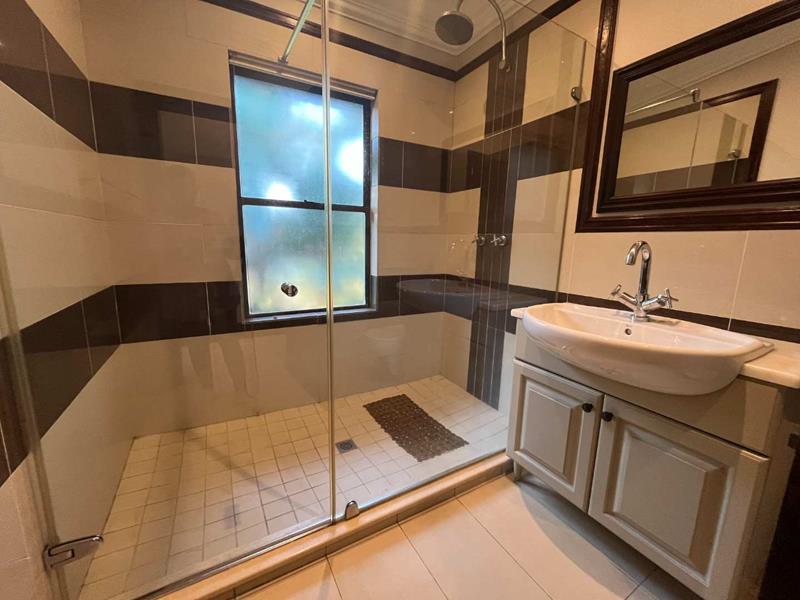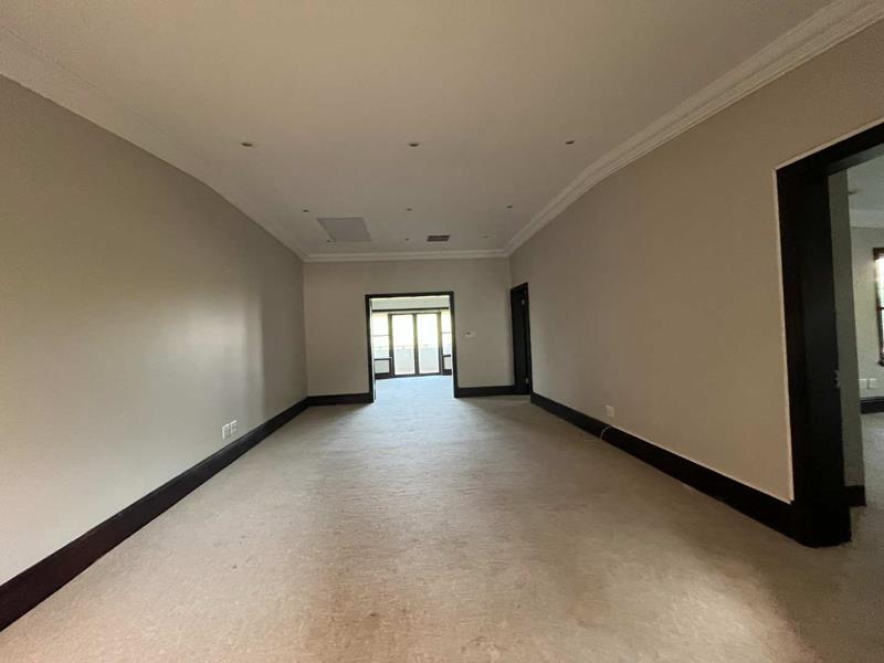 The lower level is an entertainer's dream, featuring expansive open-plan living spaces, a stylish TV lounge, a study, fully fitted gourmet kitchen with separate scullery, and a dedicated study. Large glass doors open seamlessly to a covered patio and splash pool, creating the perfect indoor-outdoor lifestyle.