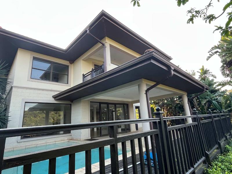 Nestled on a prime fairway-fronting site overlooking the 4th green of the prestigious Zimbali Golf Course, this freestanding 4-bedroom, 5-bathroom villa offers the ultimate in luxury estate living. Fully airconditioned and designed with effortless flow, this double-storey home exudes both comfort and elegance.