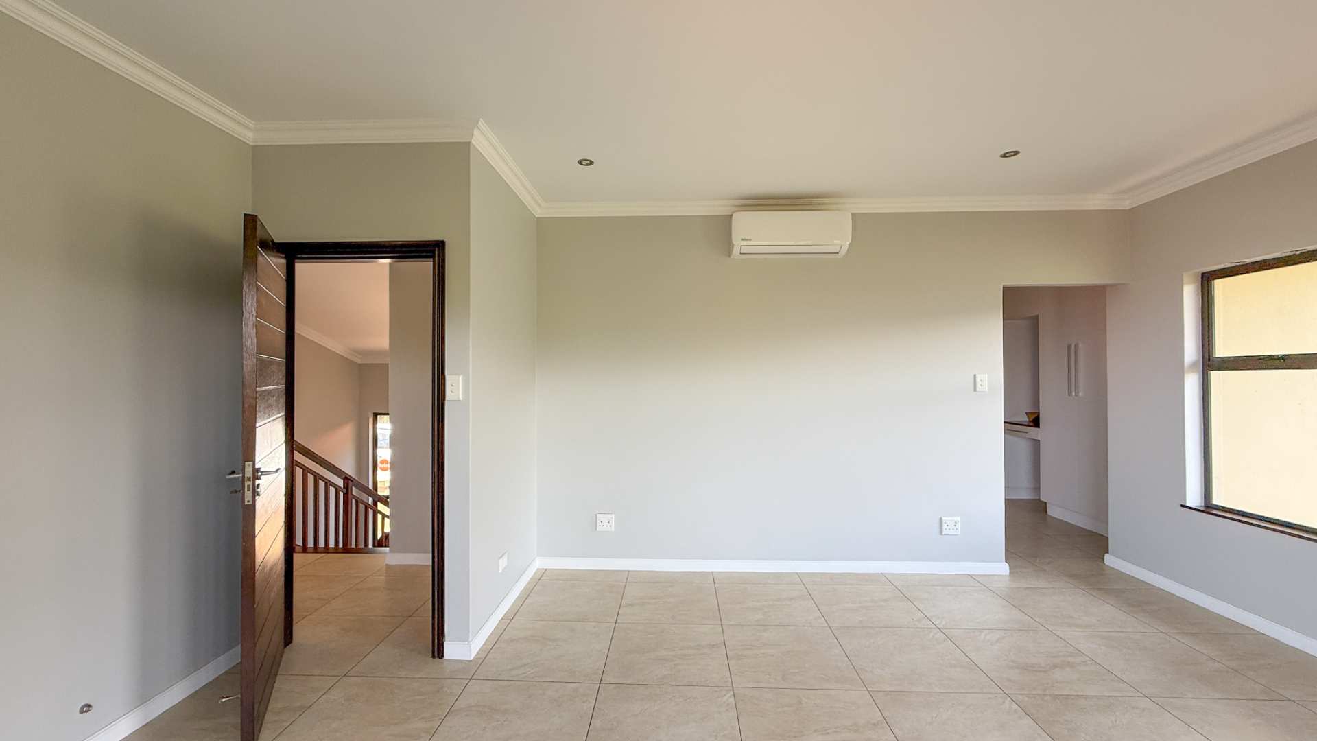 Upstairs, the home features four generously sized bedrooms, all en suite and thoughtfully designed for privacy and comfort. Each bedroom opens onto a small balcony, where you can enjoy beautiful distant sea views and tranquil estate surrounds.